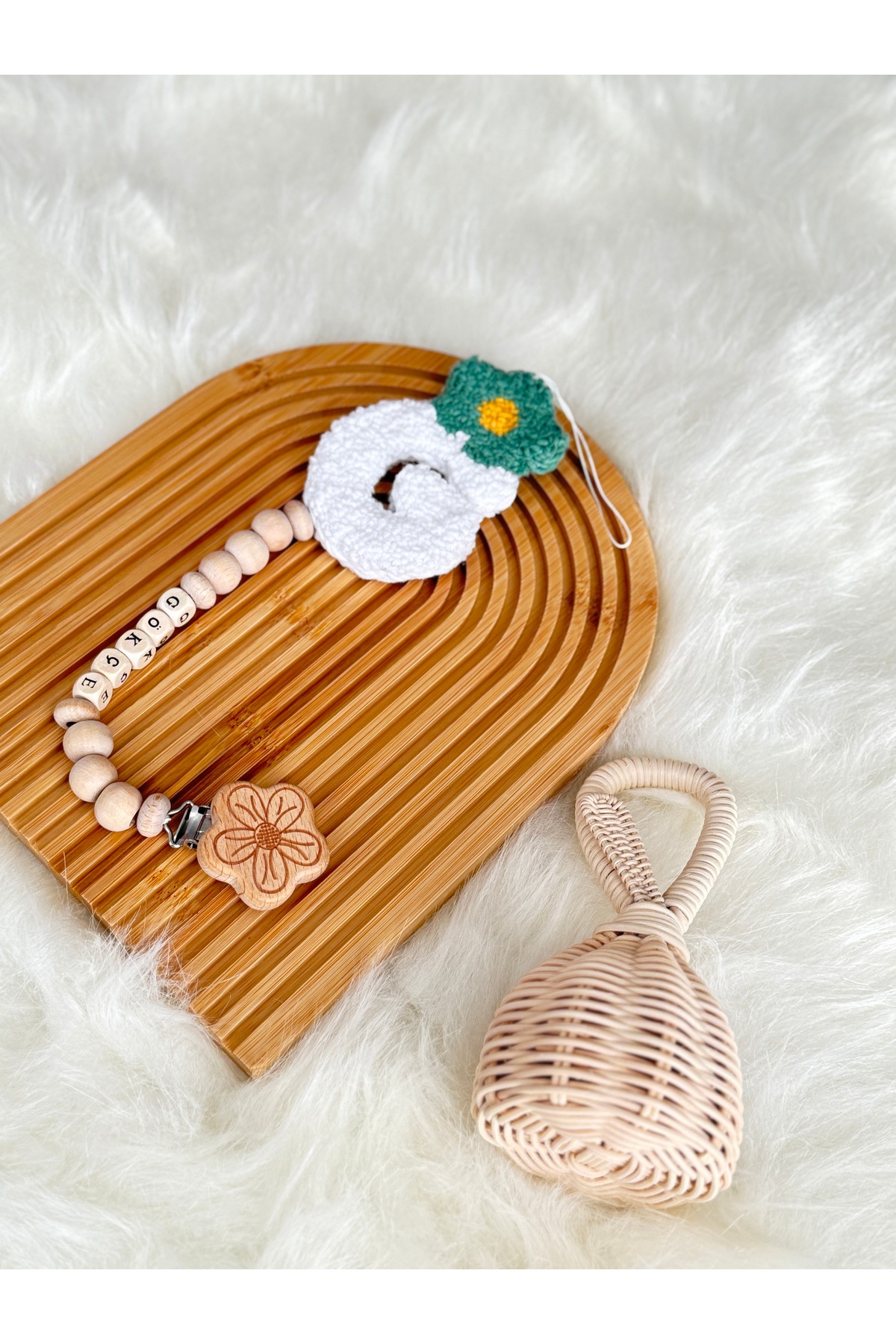 My Kids Room Doğal Ahşap Emzik Zinciri – Isimli Emzik Askısı Ahşap Emzik Zinciri Emzik Tutucu