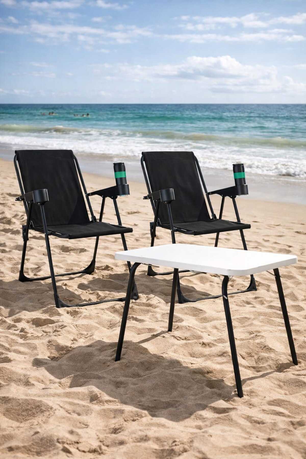 DEKOZUM HOLİDAY Kamp Seti Kamp Sandalyesi Kamp Masası Katlanır Kamp Piknik Seti 2 SANDALYE 1 MASA