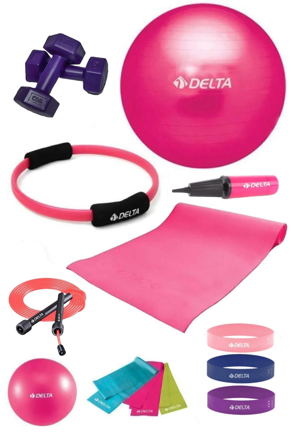 Delta 140 – 159 Cm Boya Uygun 14 Parça Pilates Seti 55 Cm Top 4 Mm Minder Çember Squat Bandı 1 Kg Dambıl