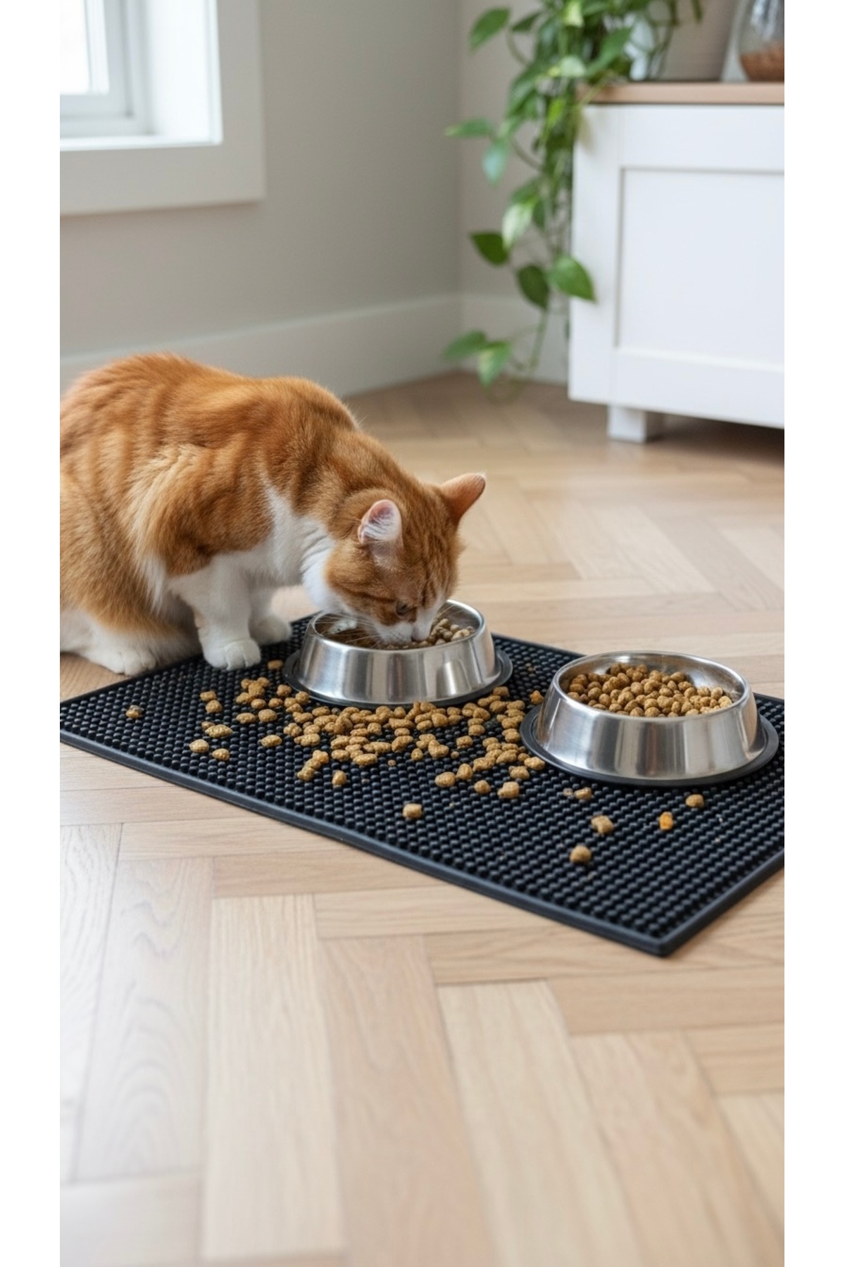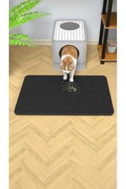 Dem Home Silikon Havuzlu Mama ve Kum Matı Yıkanabilir Kedi Tuvaleti Önü Kedi Kumu Paspası 42×30