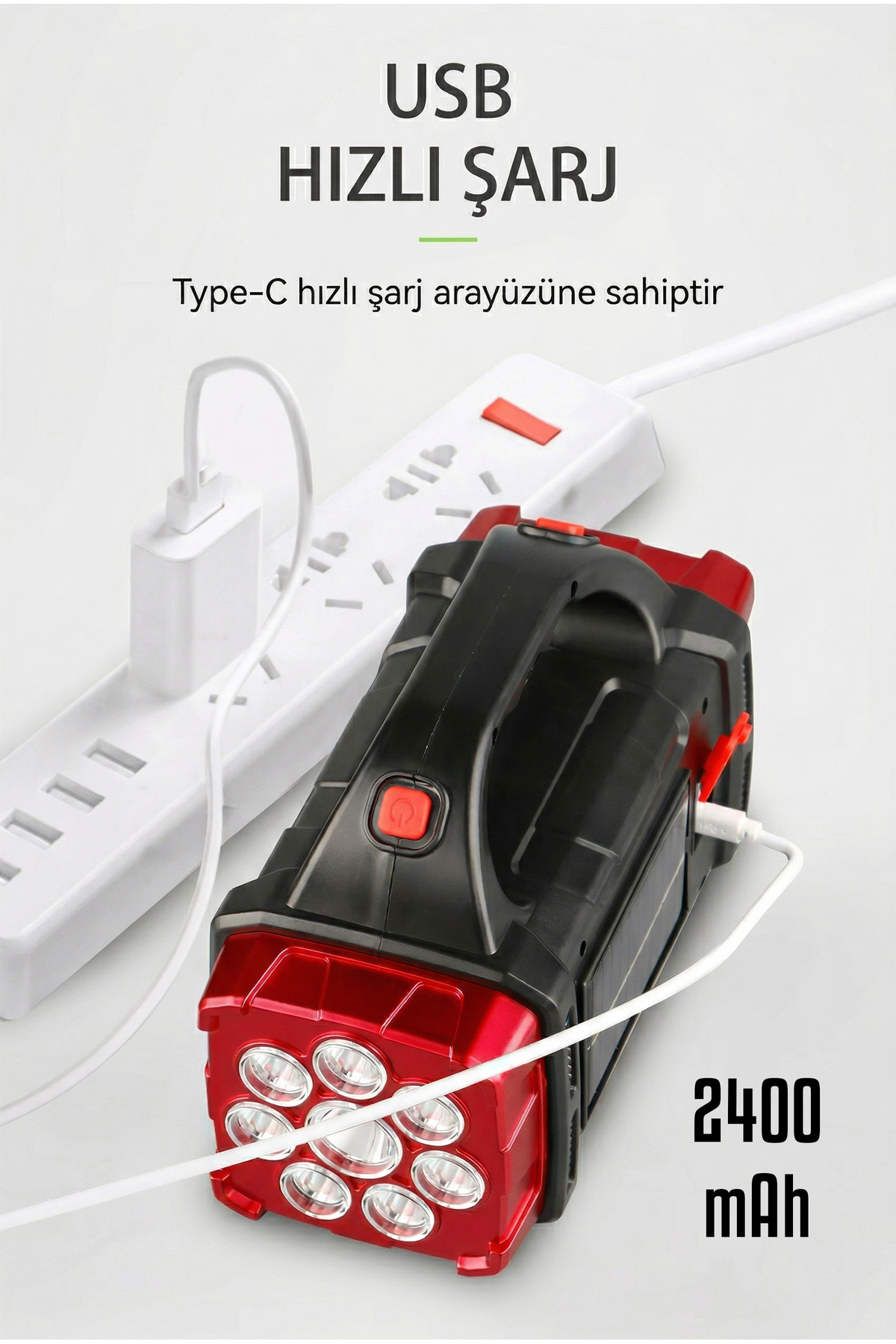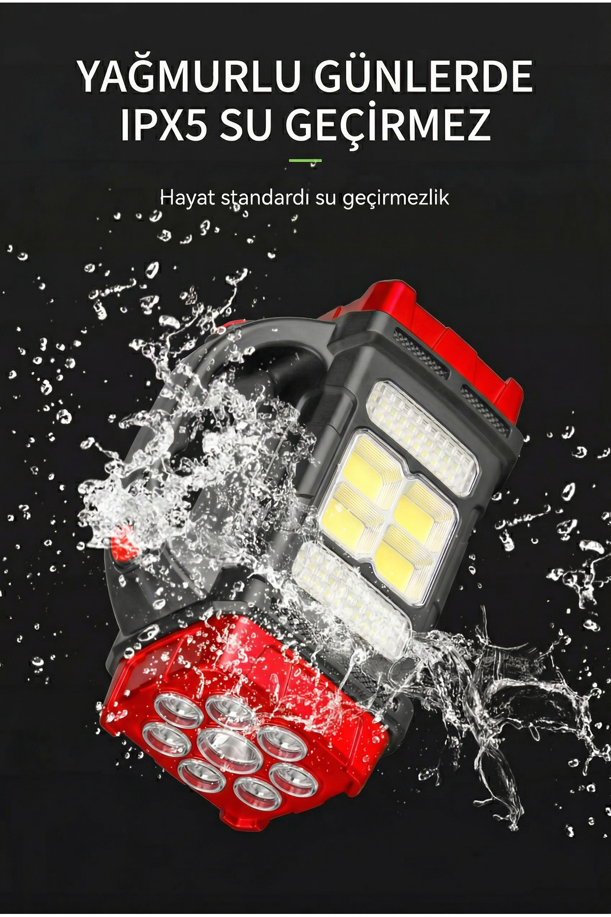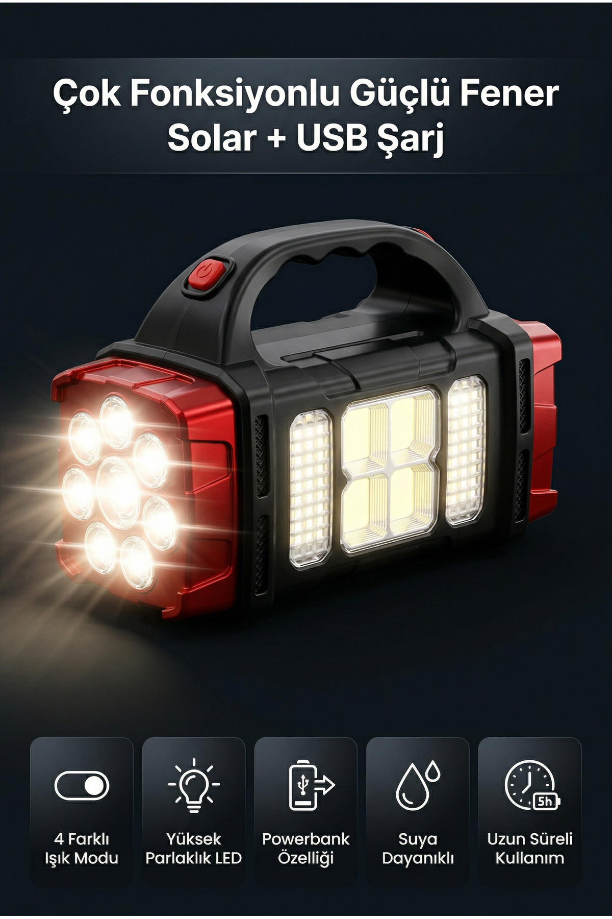 DEMPOWER Güneş Enerjili Powerbank Özellikli LED El Feneri 4 Işık Modu Suya Dayanıklı Çok Fonksiyonlu