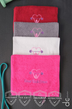 denizlicotton Nakışlı Sporcu Havlusu Pamuklu, Anti bakteriyel, Ter Emici Fitness Plates Boks Tenis Spor Havlusu