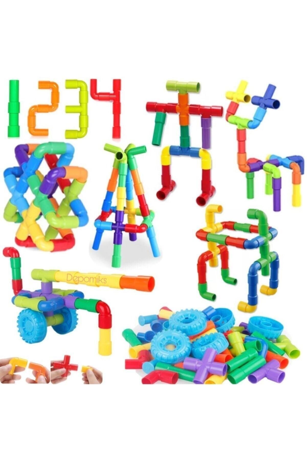 Depomiks Avm Tekerlekli Boru Lego Yapı Blokları 72 Parça El-göz Koordinasyon Eğitici Oyuncak
