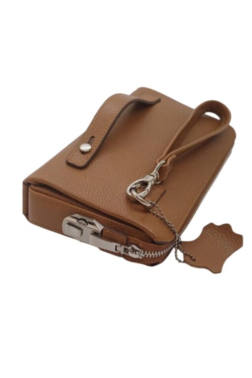 HELMBROOK Carlye Hakiki Deri Haki Taba Uniseks Ön Cepli Bileklikli Fermuarlı Rfid Korumalı Çanta