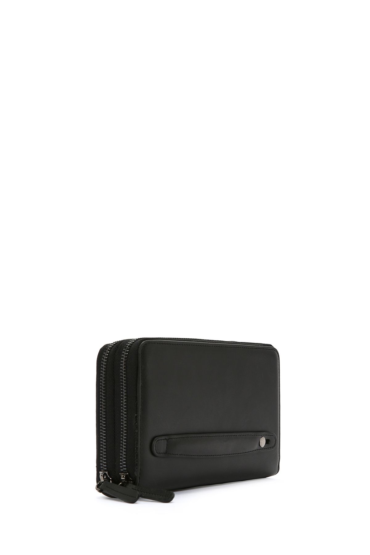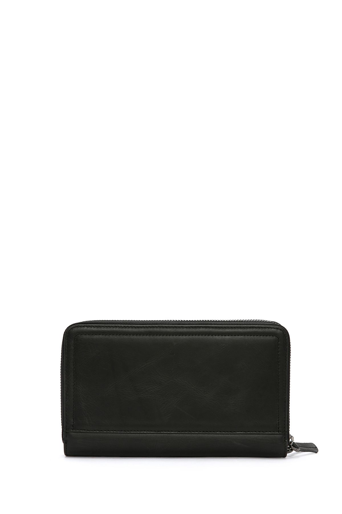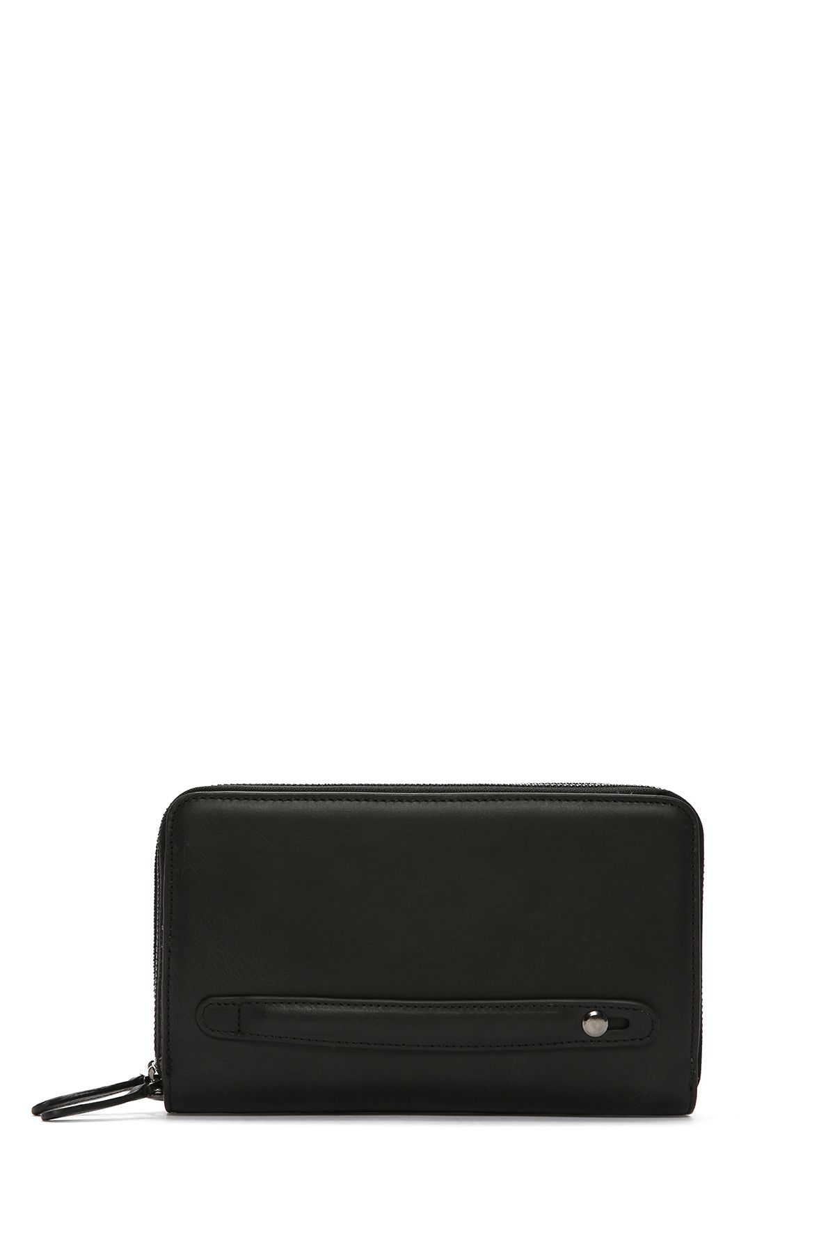 Erkek Siyah Telefon Bölmeli Deri El Çantası