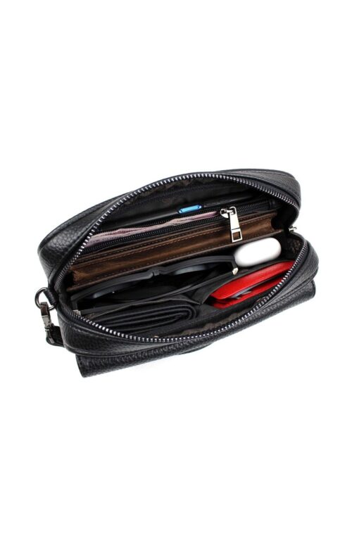 deri,se club Erkek Siyah El Çantası Lüks Seyahat Günlük Çok Bölmeli Portföy Çanta El Çantası