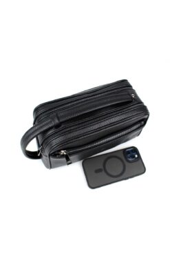deri,se club Erkek Siyah El Çantası Portföy Çanta Iki Bölmeli El Çantası Clutch Çanta