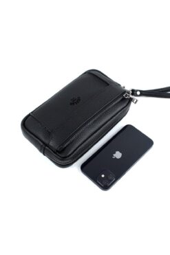 deri,se club Erkek Siyah Lüks El Ve Bileklik Kemerli Portföy El Çantası