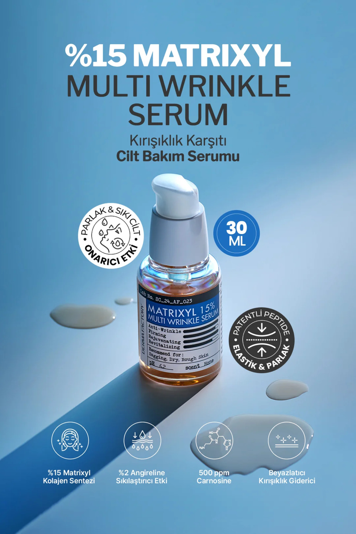 DERMA FACTORY Kırışıklık ve Sarkmalar İçin Yüksek Etki Sağlayan Matrixyl %15 Serum