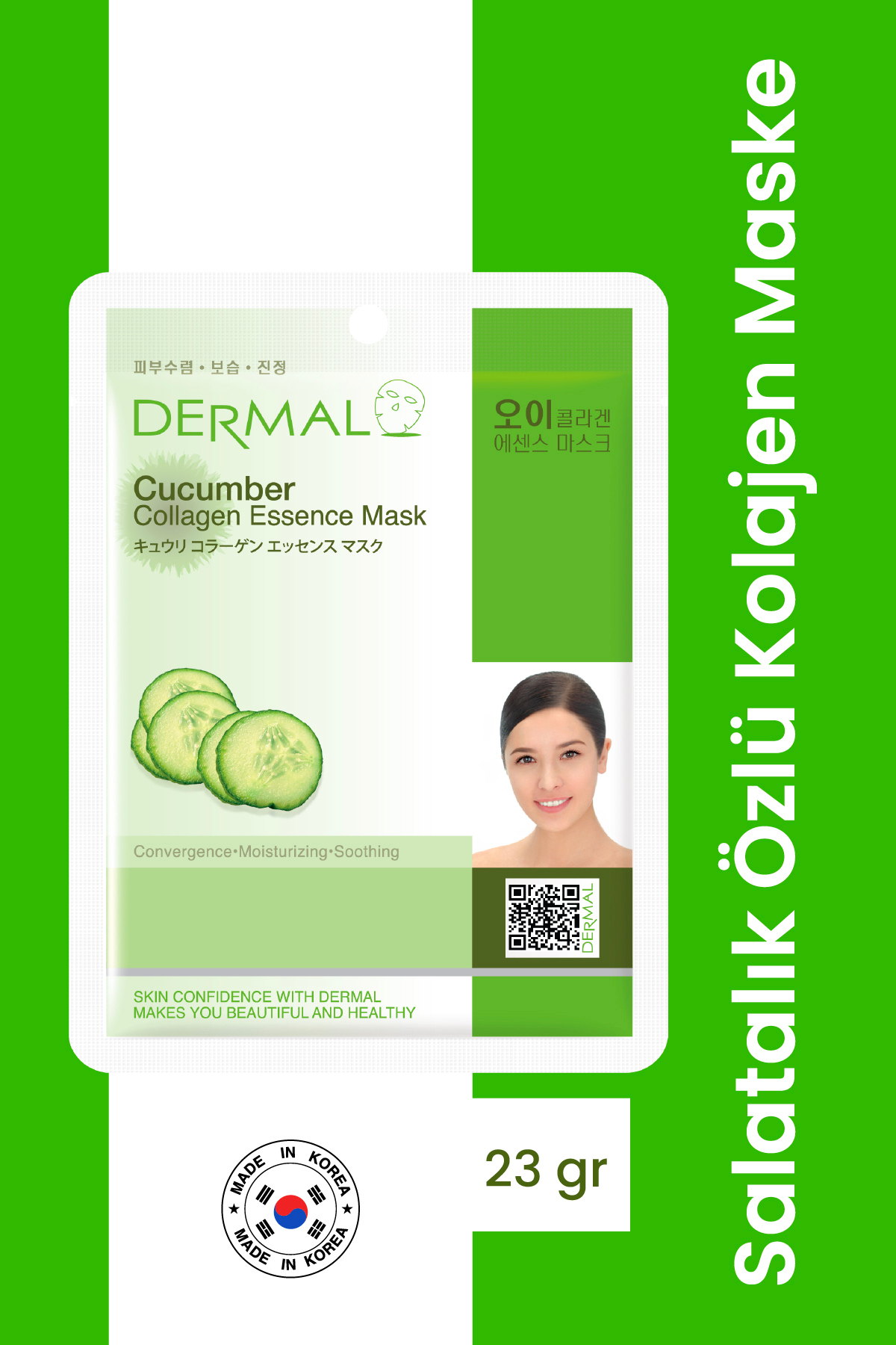 Dermal Nemlendirici ve Pürüzsüzleştirici Salatalık Özlü Kolajen Maske 23 GR