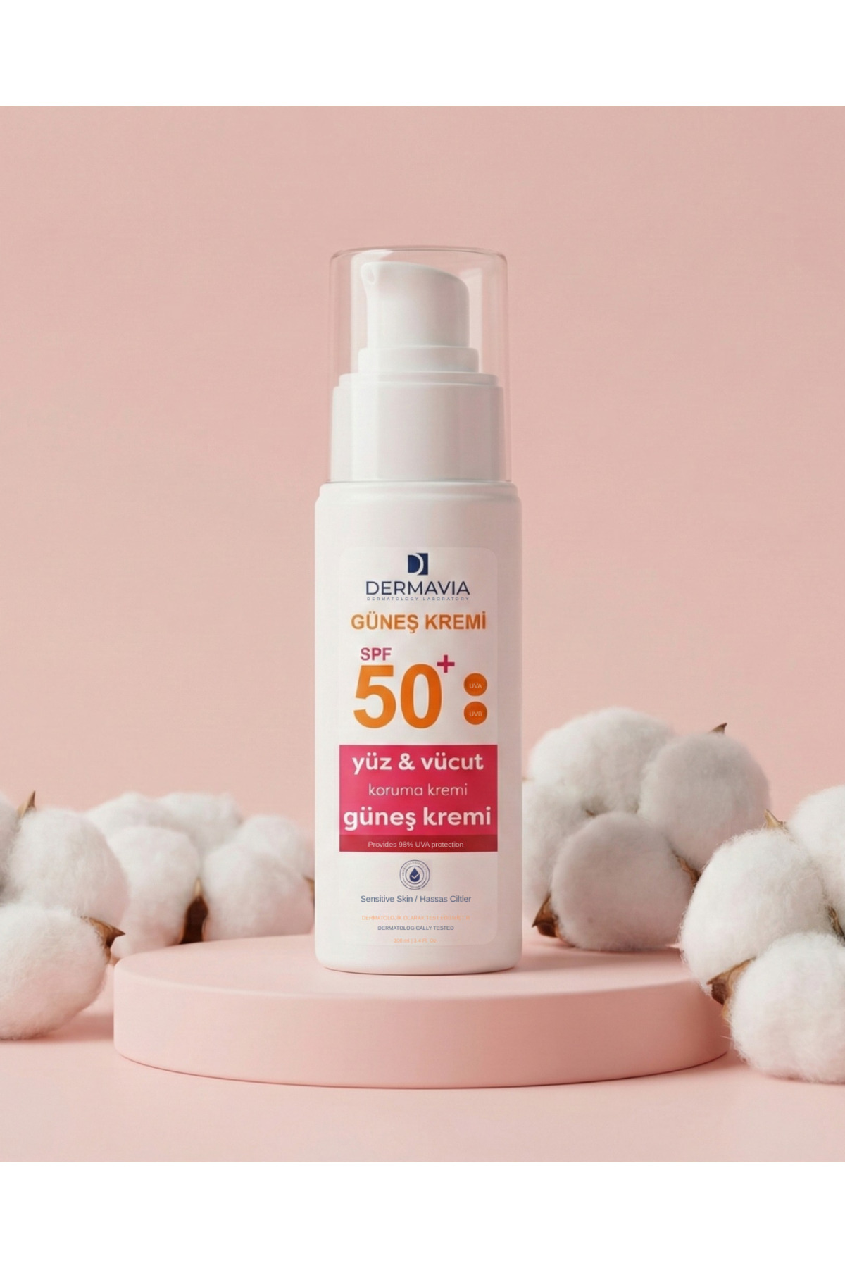 Dermavia SPF 50+ Hassas Ciltler İçin Yüz ve Vücut Güneş Kremi 100 ml, Yüksek Koruma