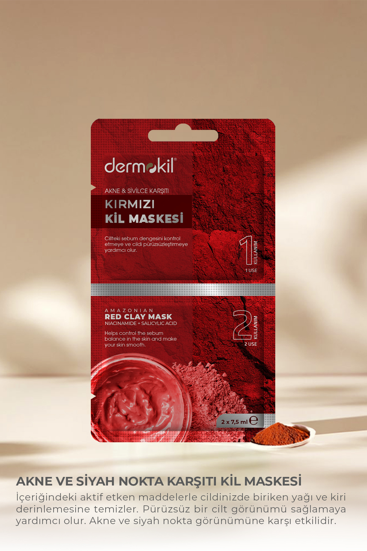 Dermokil Kırmızı Kil Maskesi (Akne & Karşıtı) 2* 7.5 ml ürününü en uygun fiyata kozmetikara.com sitemizden sipariş verebilirsiniz.
