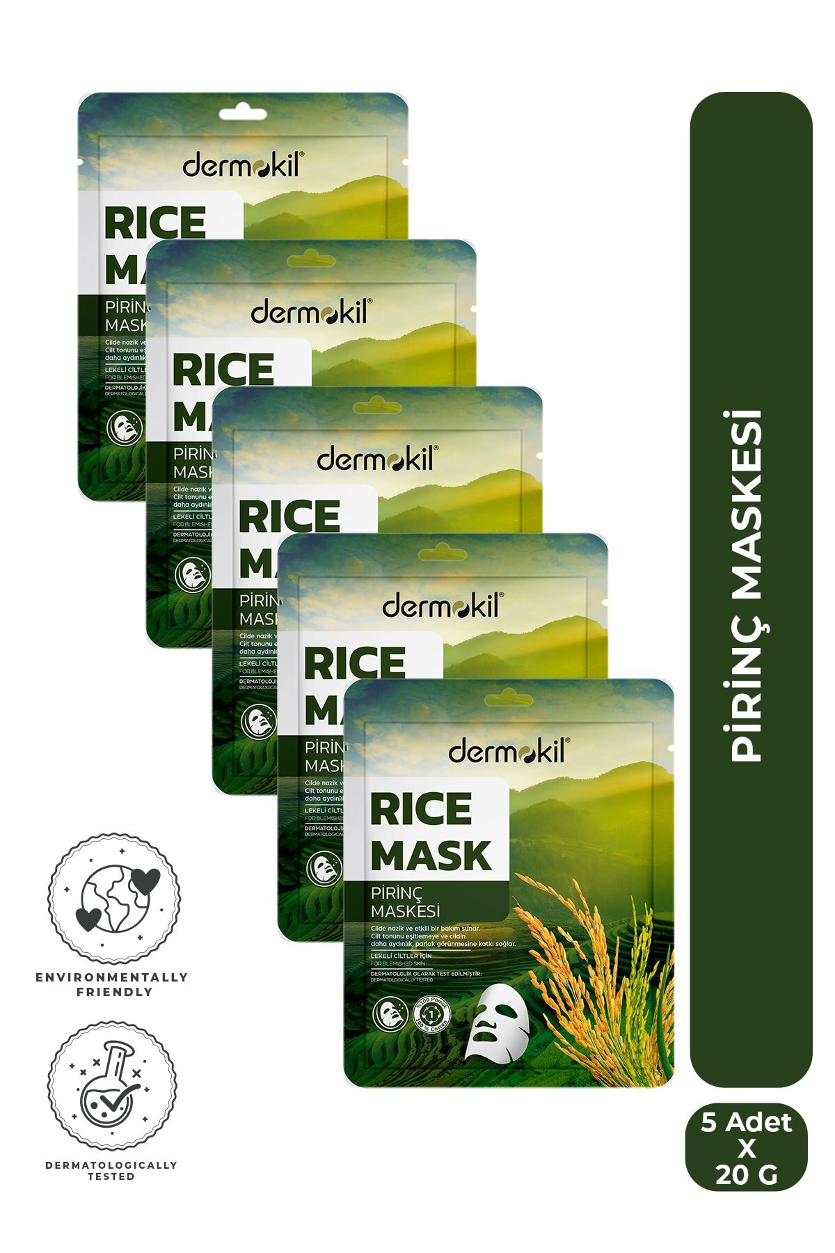 Dermokil Pirinç Kağıt Yüz Maskesi (Lekeli Ciltler İçin) 20 g x 5 Adet