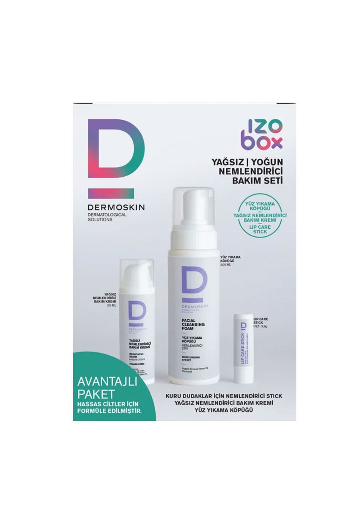 Dermoskin Izobox Cilt Bakım Seti | Yüz Yıkama Köpüğü | Nemlendirici Krem | Lip Stick 3,9g | 200+50 ml