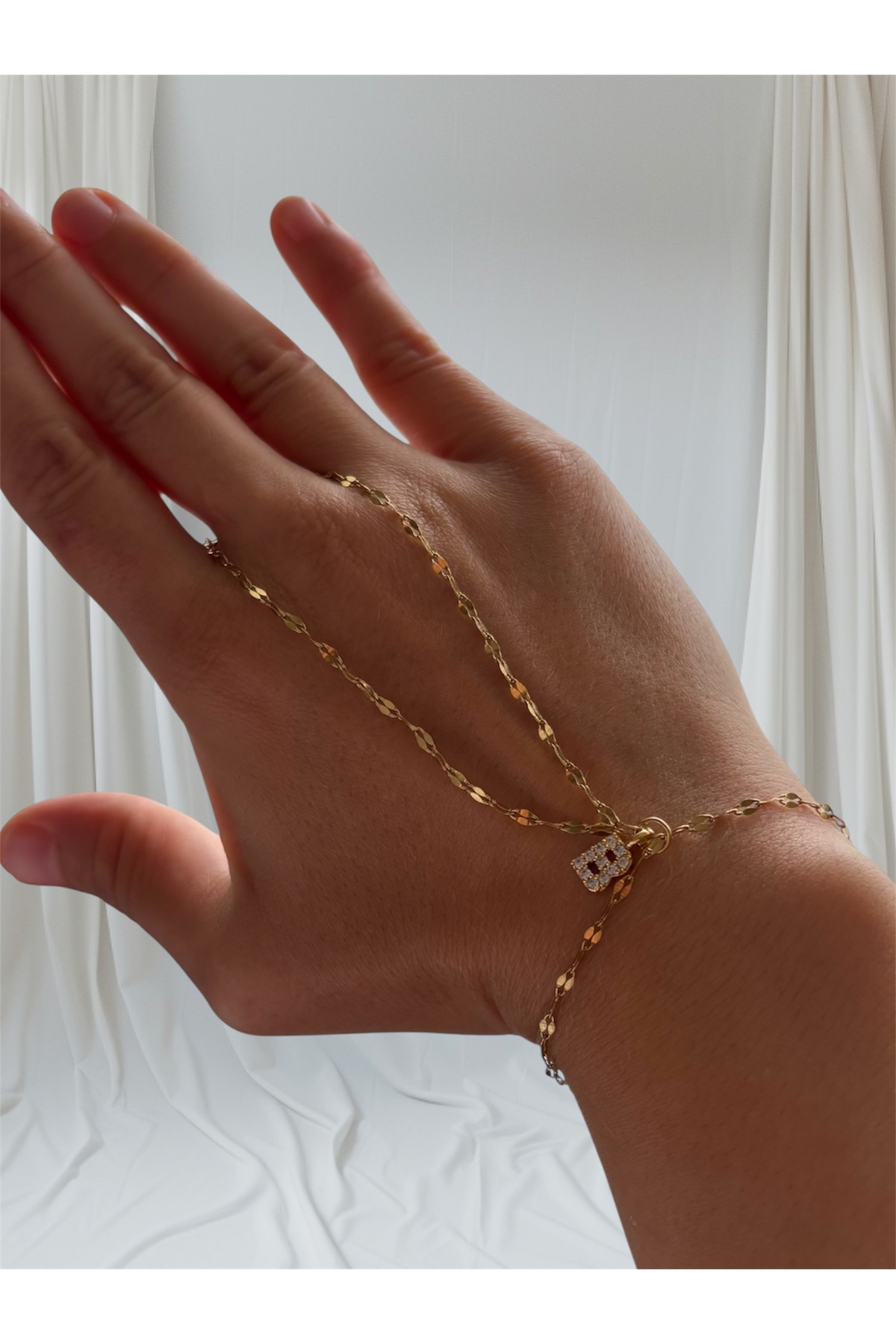 pop up store 14k Altın Kaplama Üçgen Model Taşlı Şahmeran / El Aksesuarı