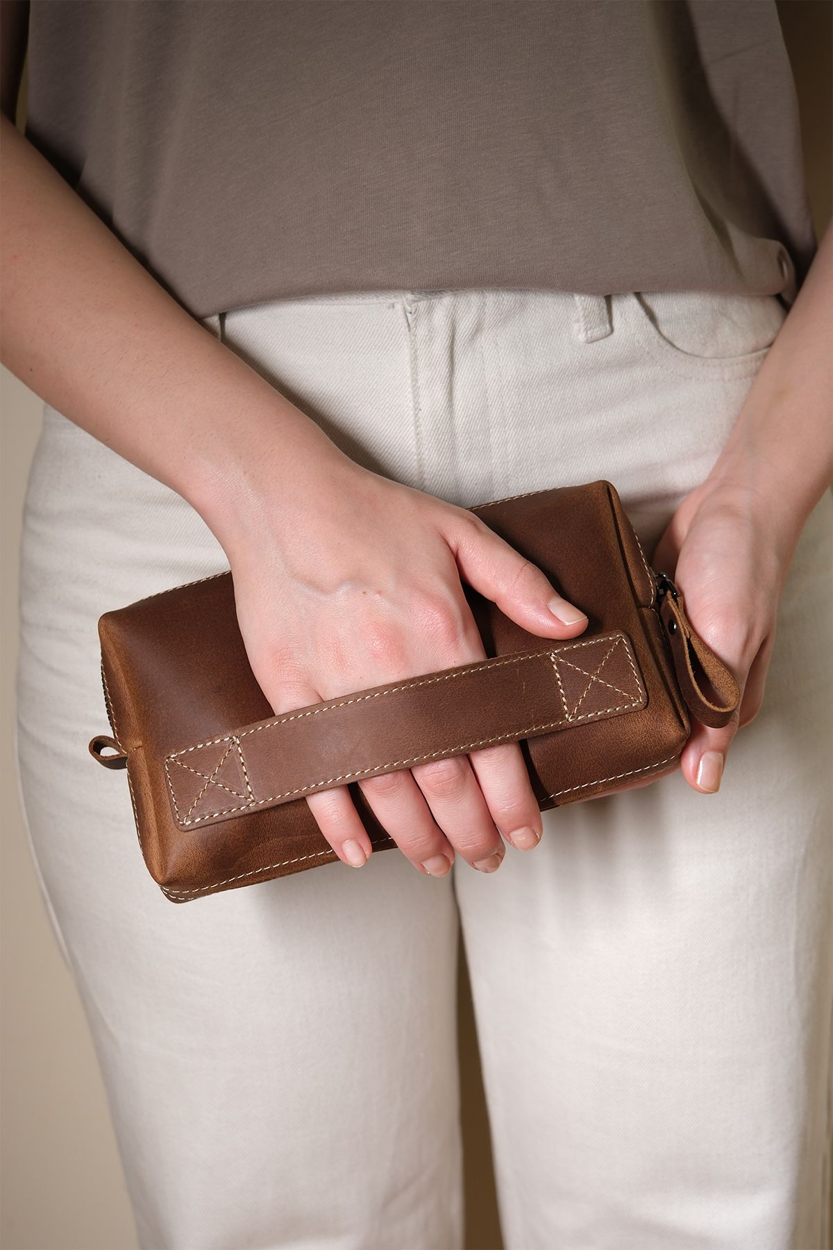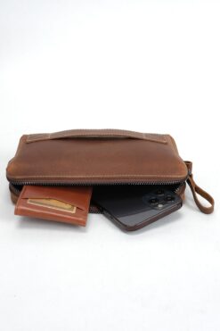 %100 hakiki eskitme sığır derisinden el işçiliği ile üretilen unisex portföy el çantamız, dayanıklı dikişleri, premium metal fermuarıyla uzun ömürlü ve son derece dayanıklıdır.