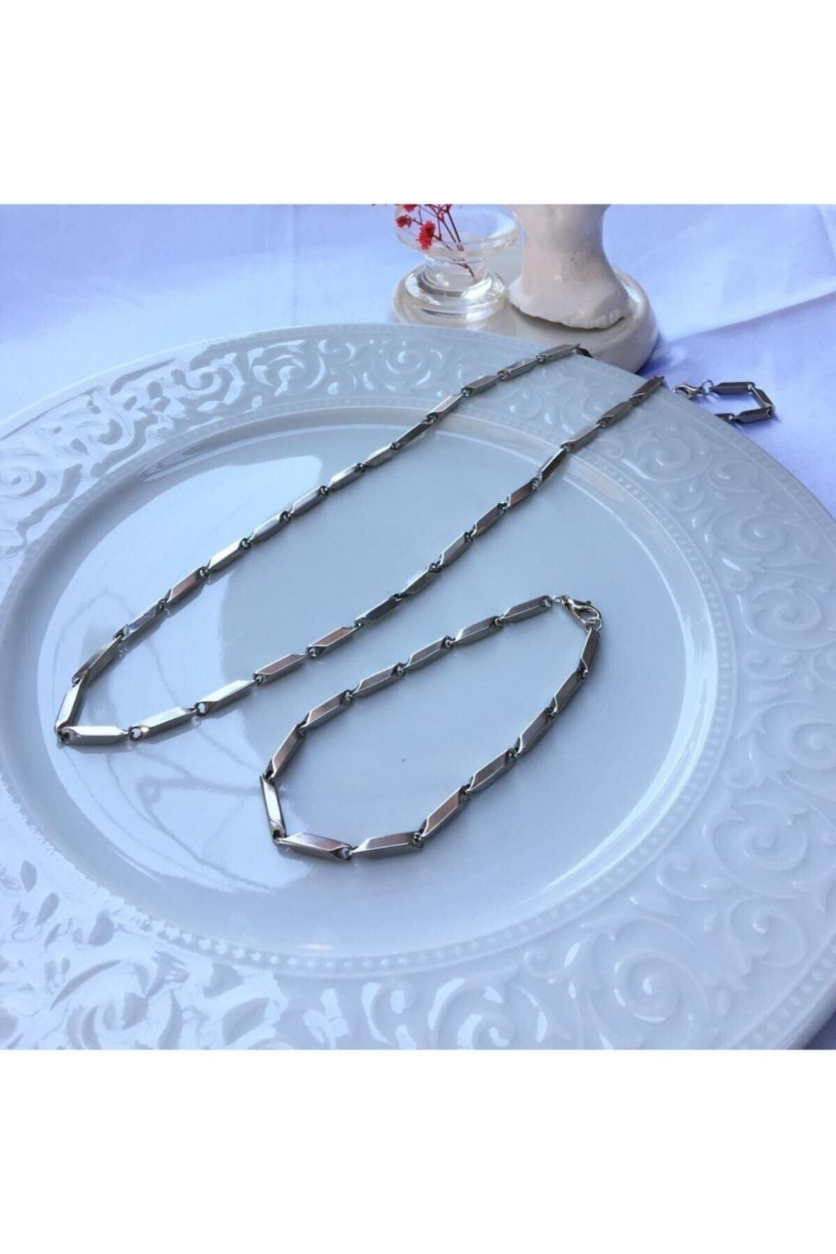 DGN Shoping Erkek Çelik Kolye Ve Bileklik Seti Küp Üçgen Model Zincir
