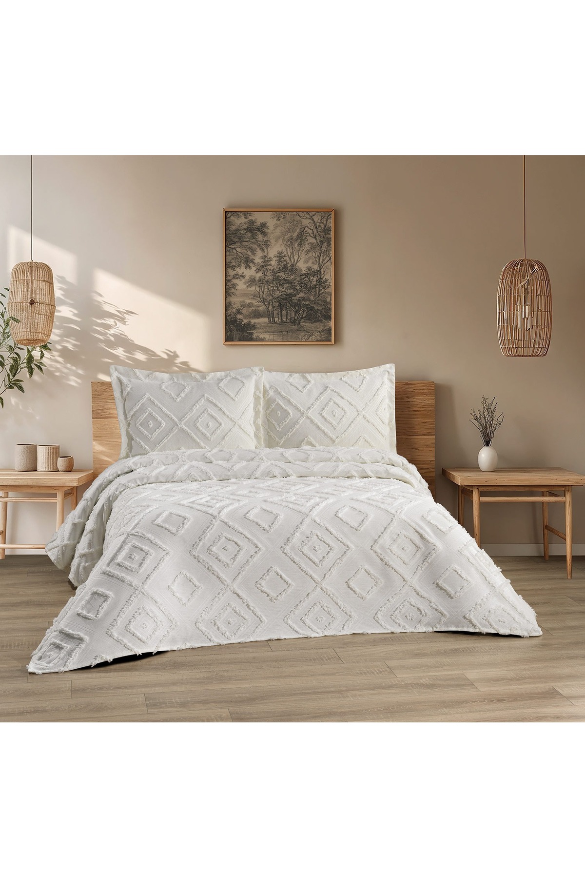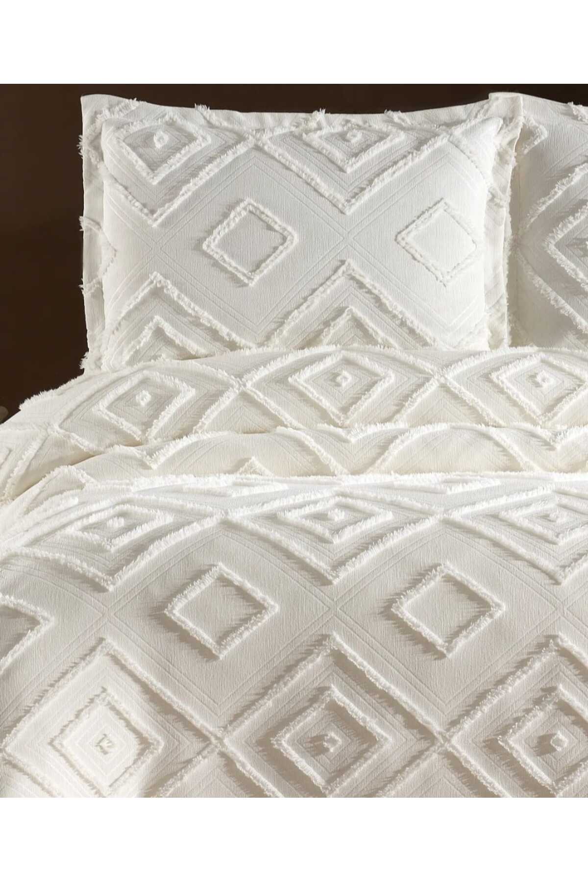 best house decor Delux Bohem Çift Kişilik Yatak Örtüsü Takımı 240×250 ve 2 adet Yastık EKRU