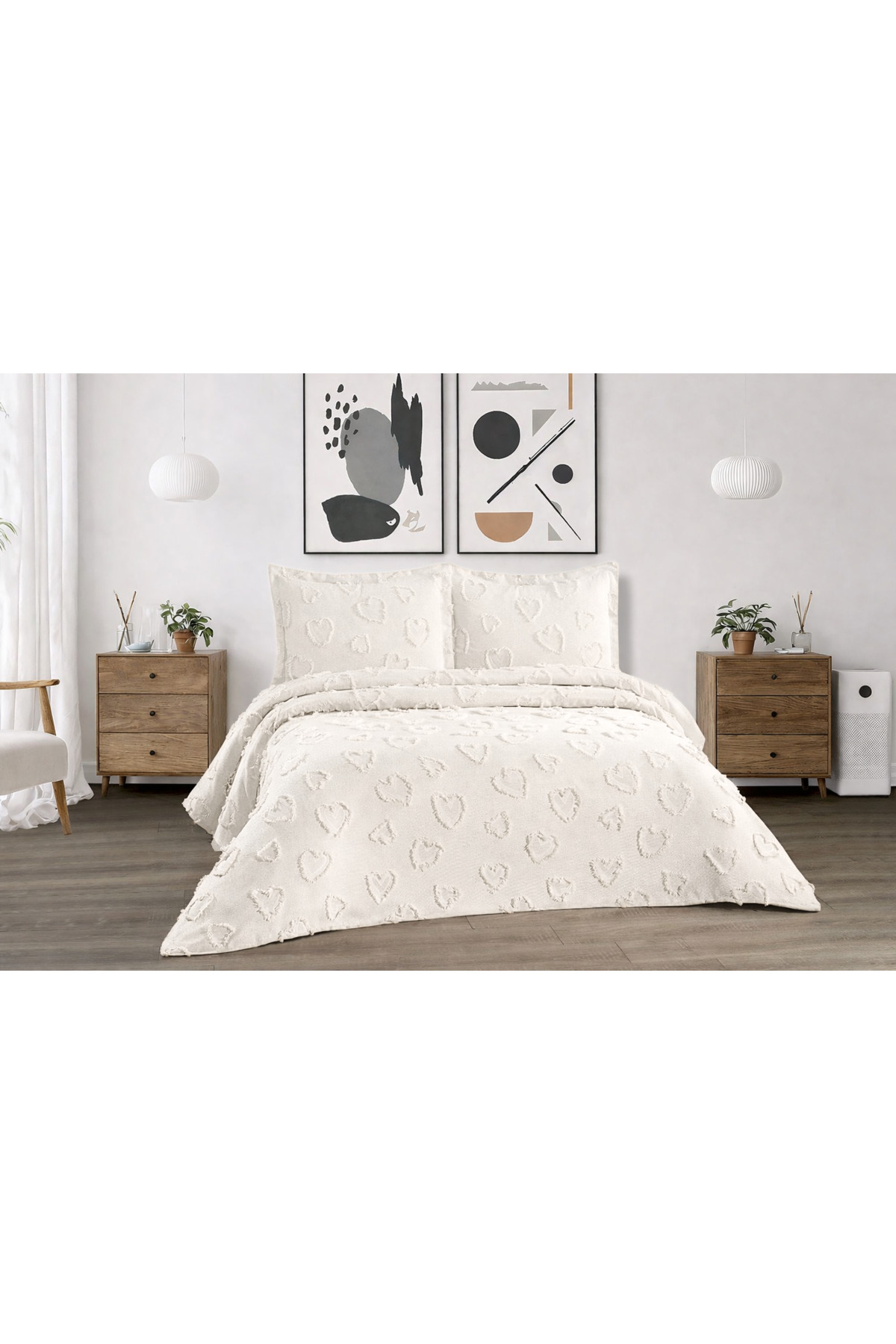 diabella Kalpli 3 Parça Çift Kişilik Yatak Örtüsü Krem