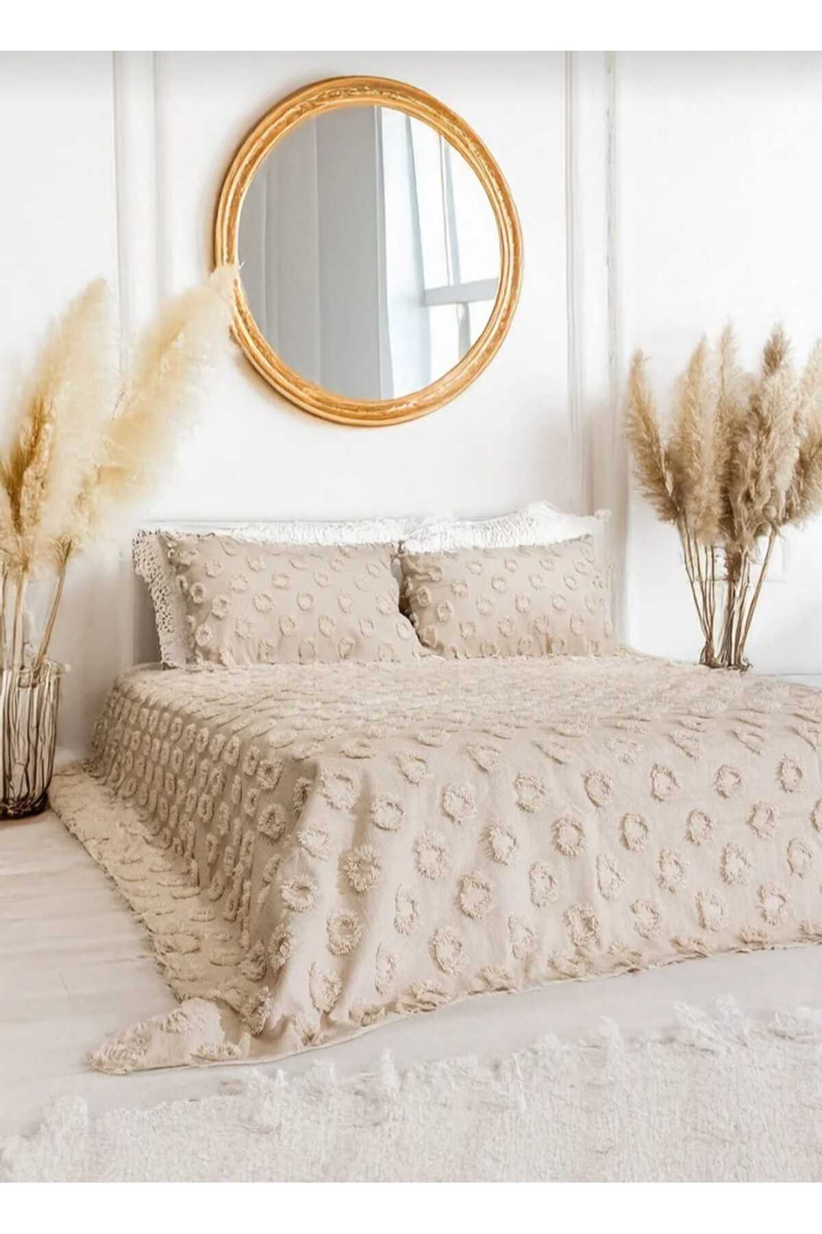 BİRHOME Sierra Jakarlı Şönil Çift Kişilik Yatak Örtüsü (bej)