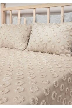 diabella Ponpon Desenli 3 Parça Çift Kişilik Yatak Örtüsü Bej