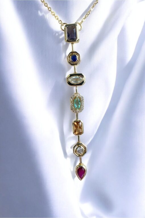 Diamara Designs Renkli Taşlı Y Kolye Rodyum Kaplama