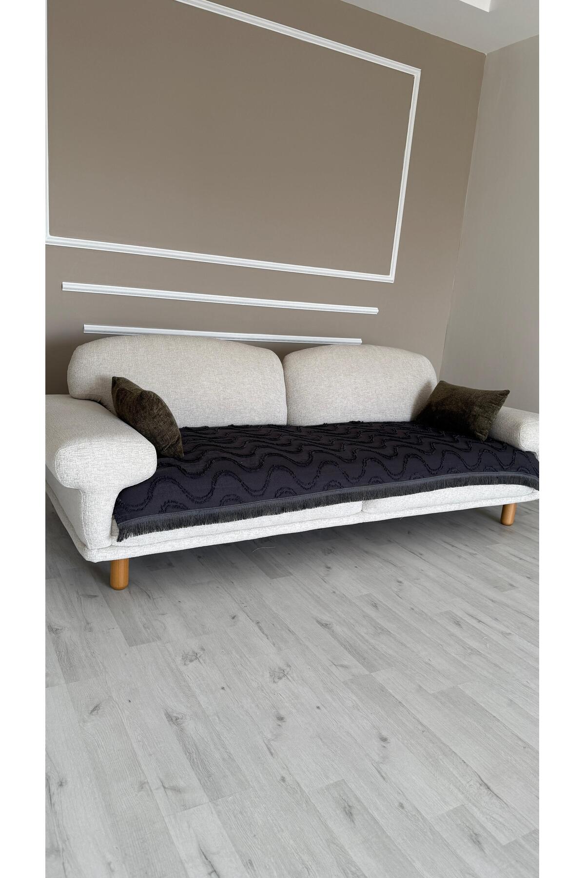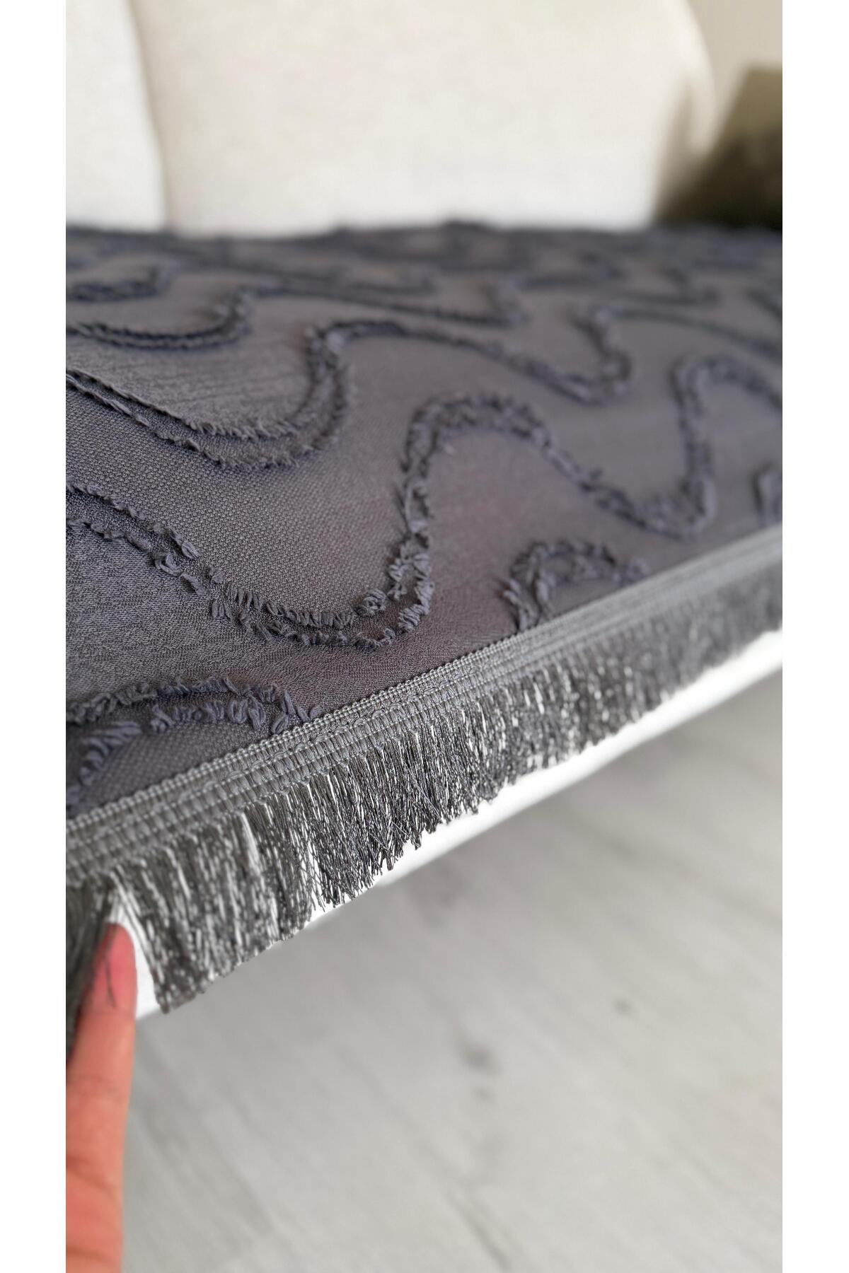 DİLETTO Bohem Püsküllü Dalgalı Oturma Yerini Kapatan Koltuk Örtüsü Antrasit 90 X 200