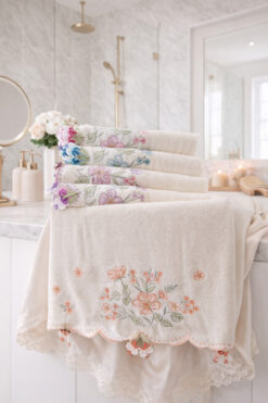 DİLEX Beyaz Çeyizlik Nakışlı 60×90 cm 2’li Havlu Set