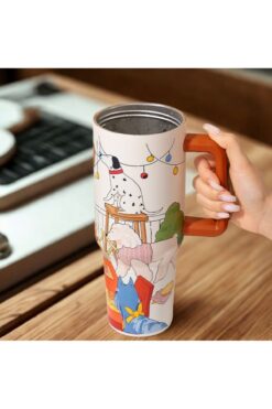 DILLER 1200ml Sevimli Hayvanlar Tumbler Pipetli/Pipetsiz Kulplu Paslanmaz Çelik Termos