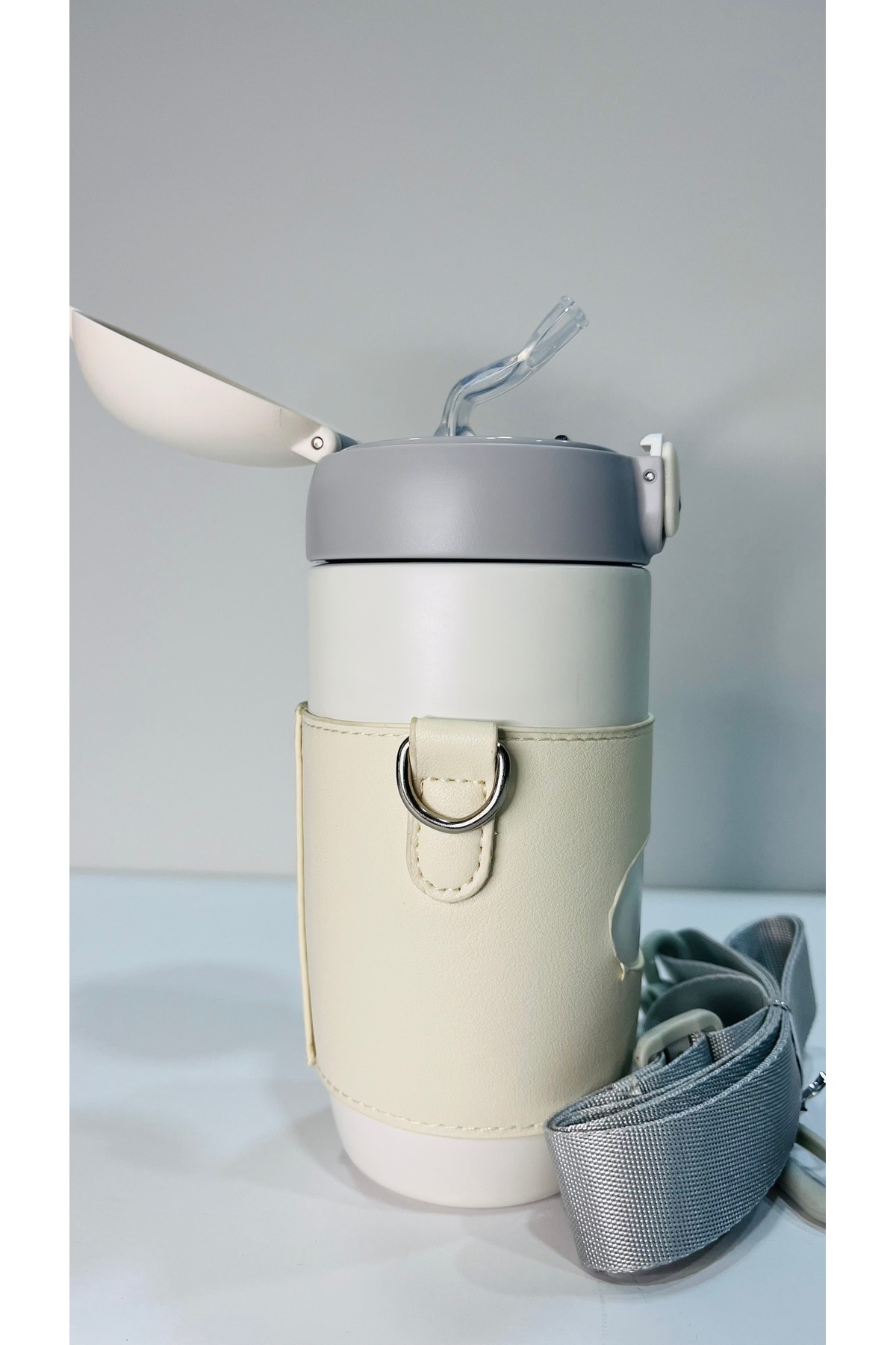 DILLER Paslanmaz Çelik Pipetli Kılıflı Askılı Termos Matara 430ml 8940 Termos Matara