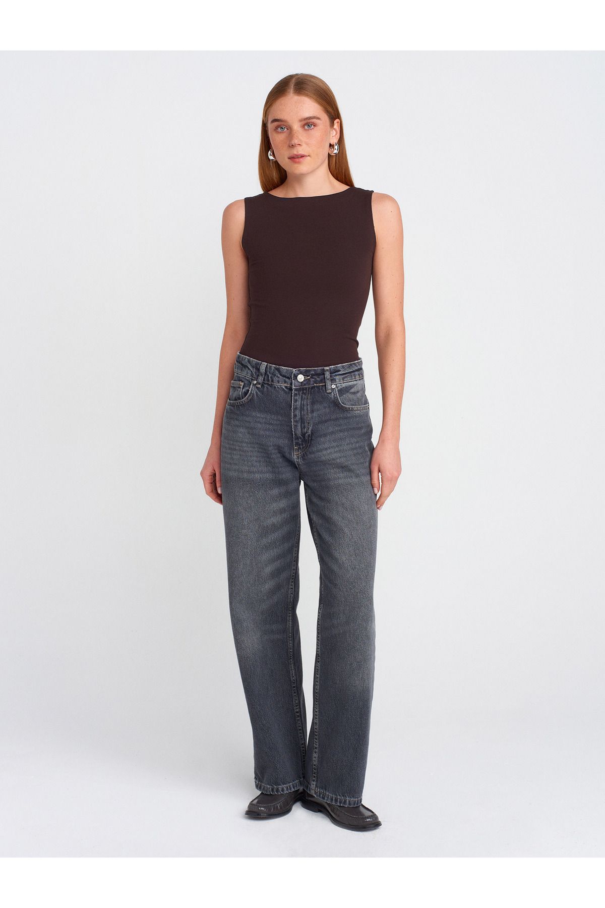 Dilvin 20868 Kayık Yaka Kolsuz Top-Koyu Kahve