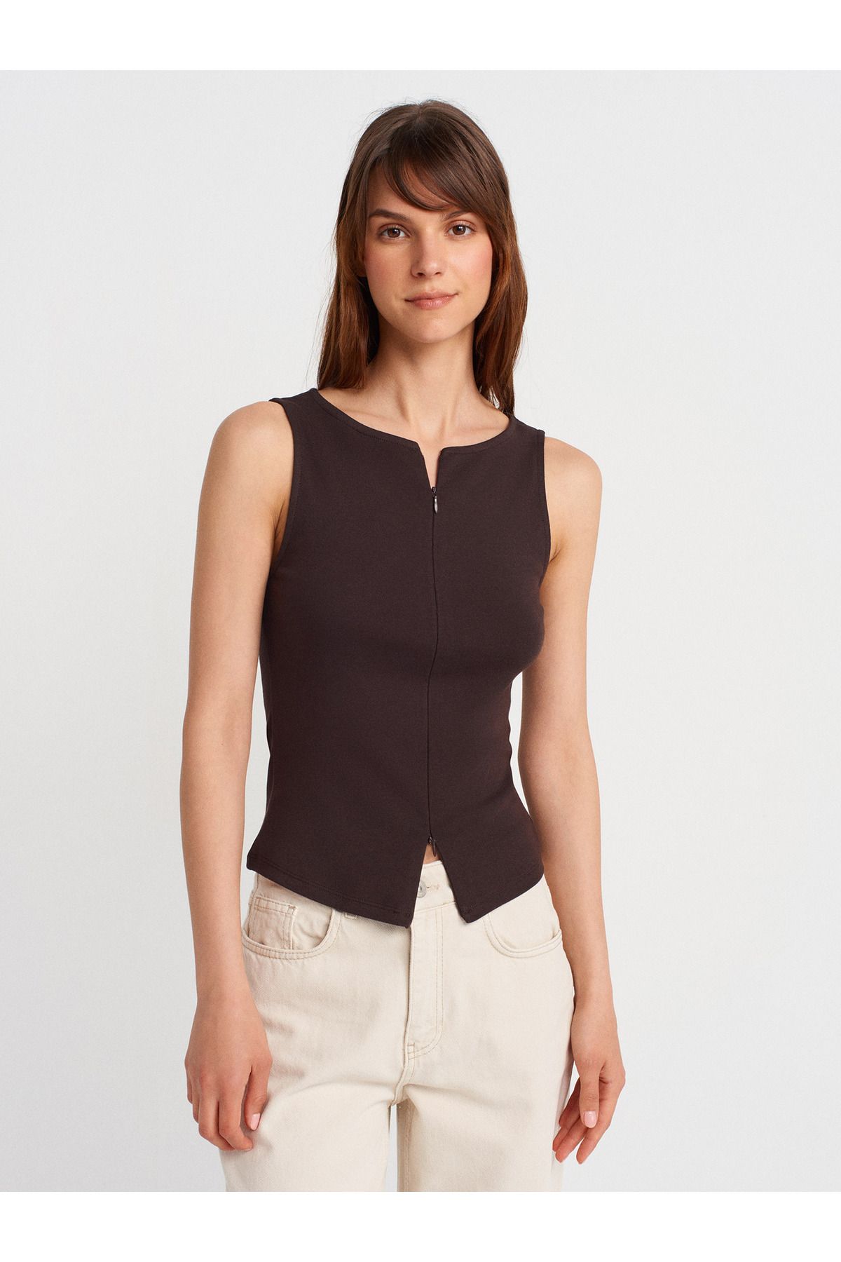 Dilvin 31764 Fermuar Detaylı Top-Koyu Kahve