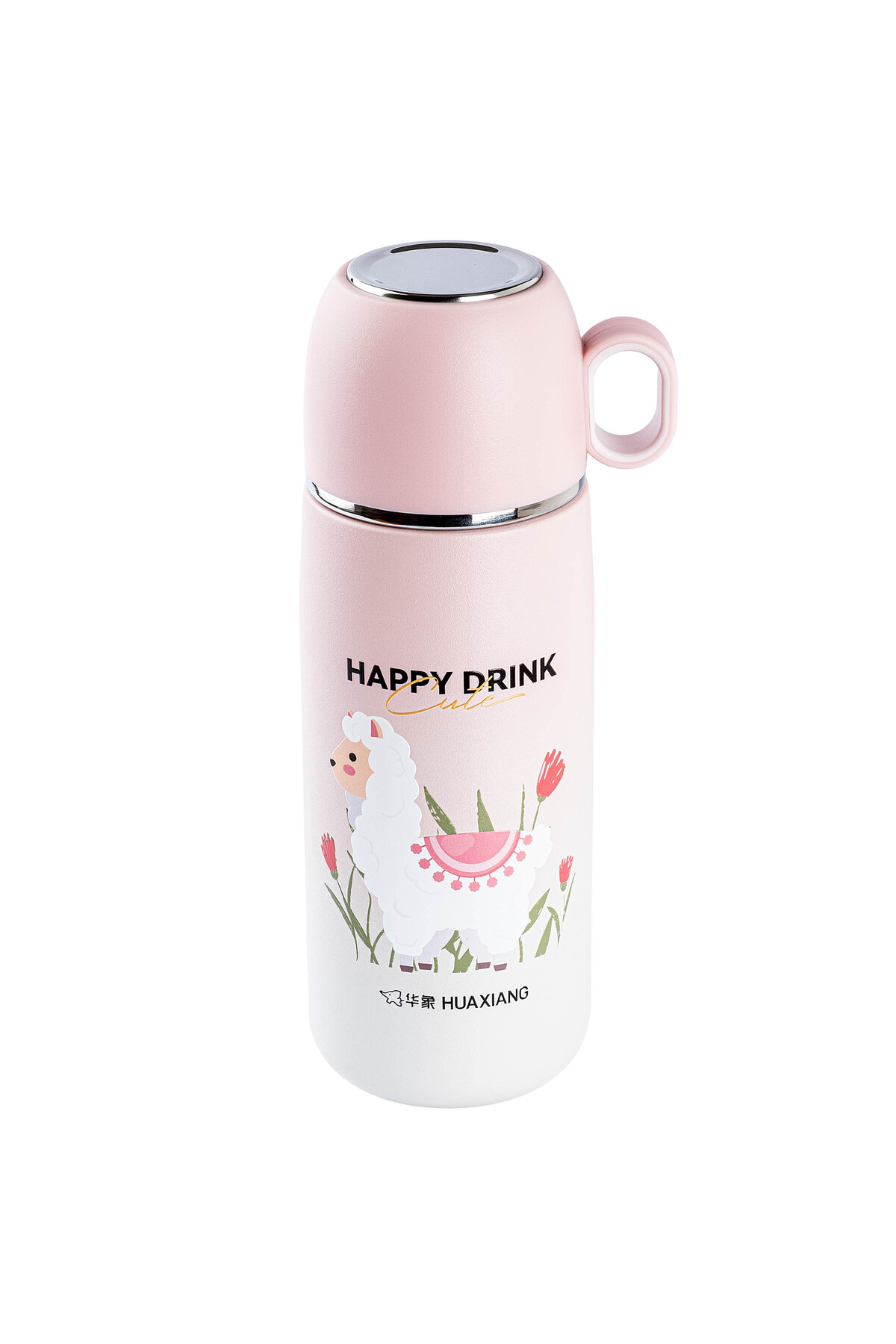 DKADI OKADI PEMBE DESENLİ BARDAKLI PASLANMAZ ÇELİK TERMOS 300ML