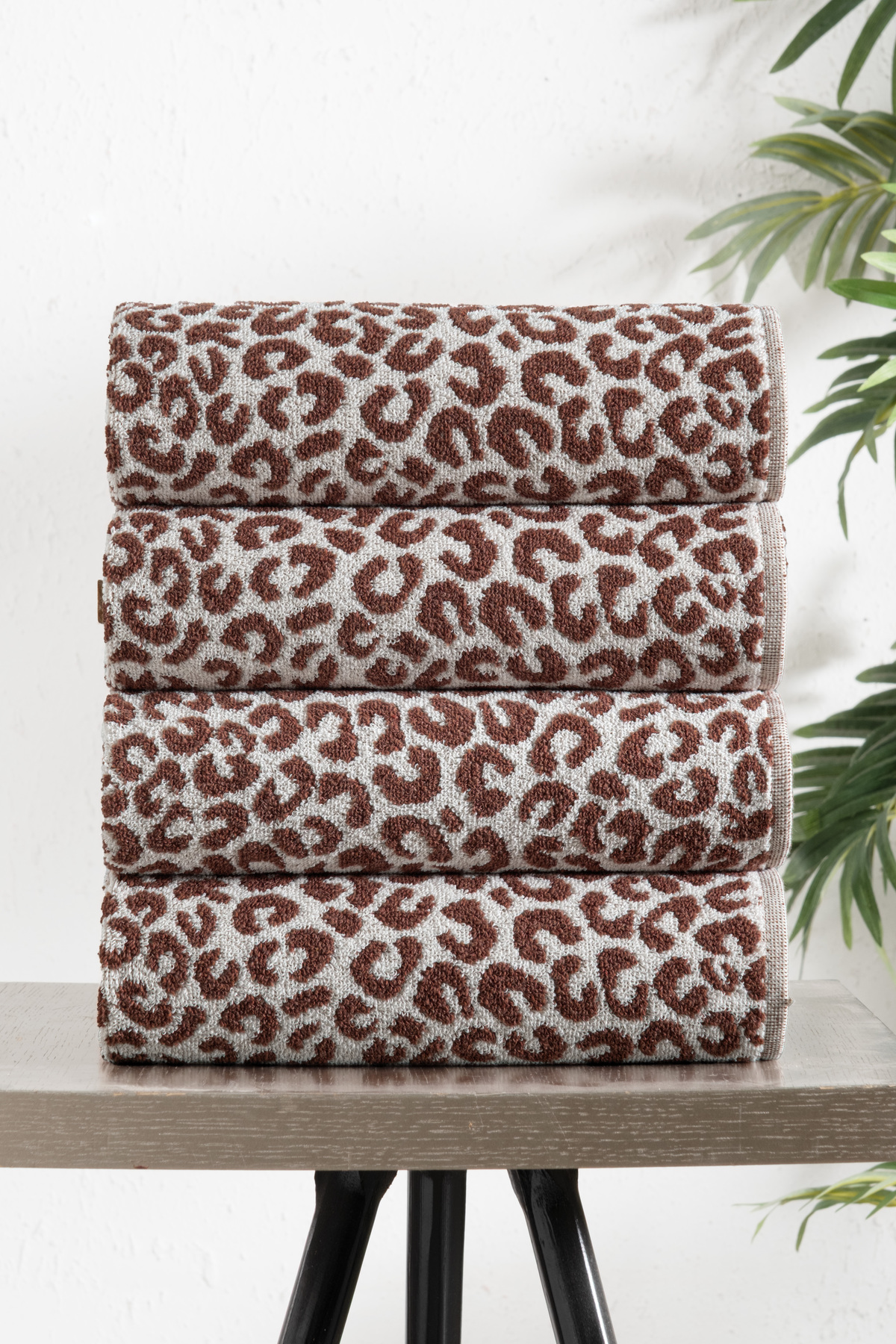 DNZGÜLCAN Leopar 4’lü 50x90cm Havlu Seti El Yüz Havlusu Pamuk
