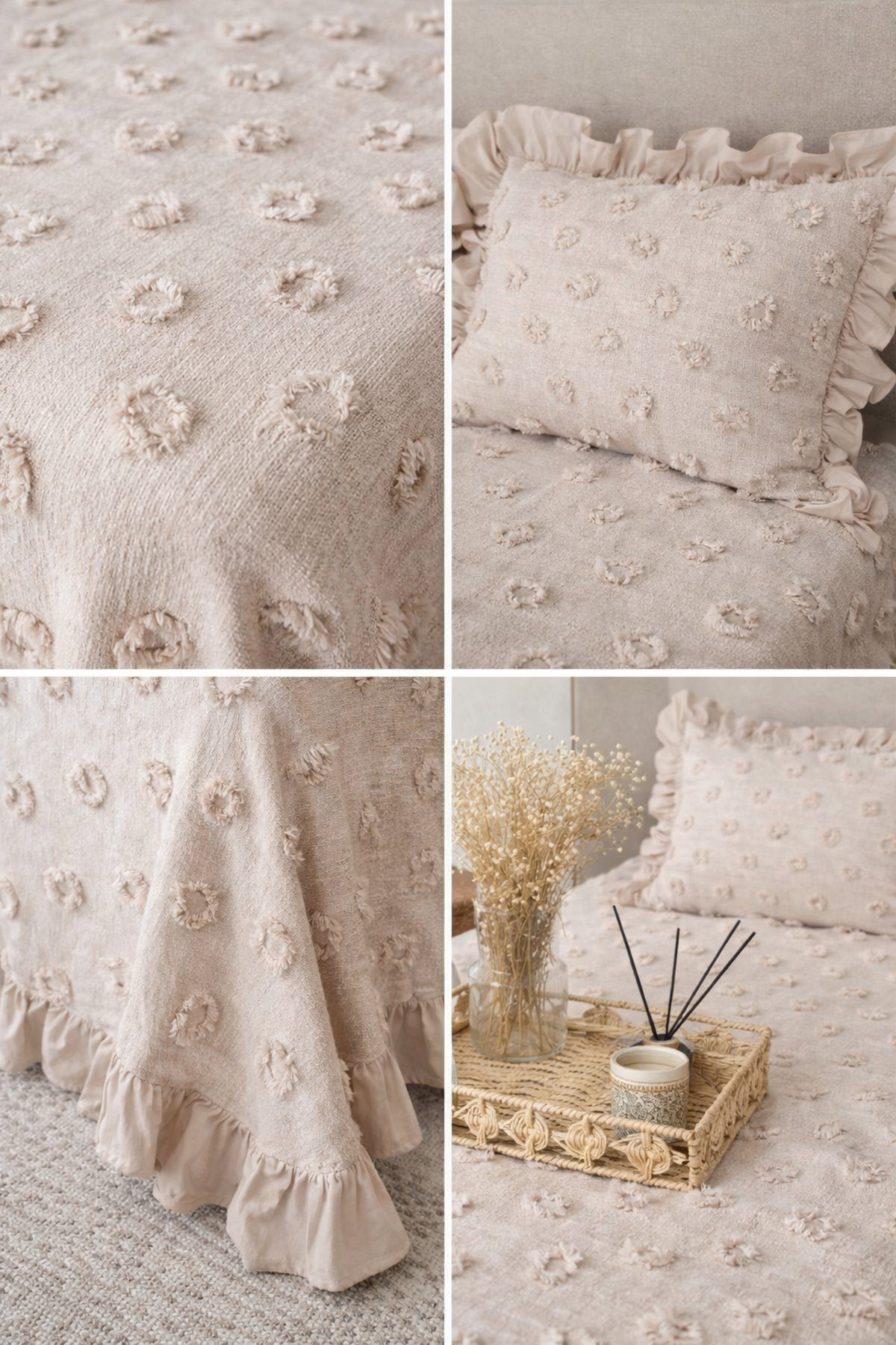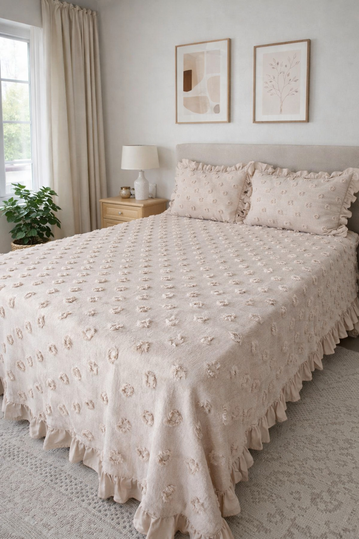BİRHOME Sierra Jakarlı Şönil Çift Kişilik Yatak Örtüsü (bej)