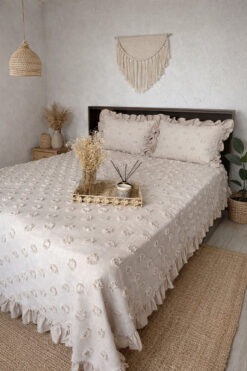 best house decor Delux Bohem Çift Kişilik Yatak Örtüsü Takımı 240×250 ve 2 adet Yastık EKRU