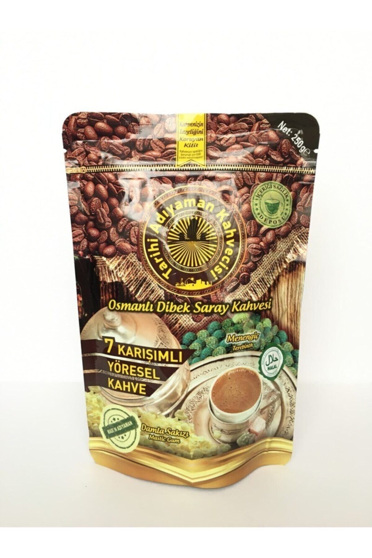 TARİHİ ADIYAMAN KAHVECİSİ DAMLA SAKIZLI OSMANLI DİBEK SARAY 250 G 1 ADET 7 KARIŞIMLI YÖRESEL KAHVE İçindekiler Türk Kahvesi (%48), Menengiç (%16) Harnup Tozu (Keçi Boynuzu), Salep, Damla Sakızı (%2), Kakao, Kahve Kreması