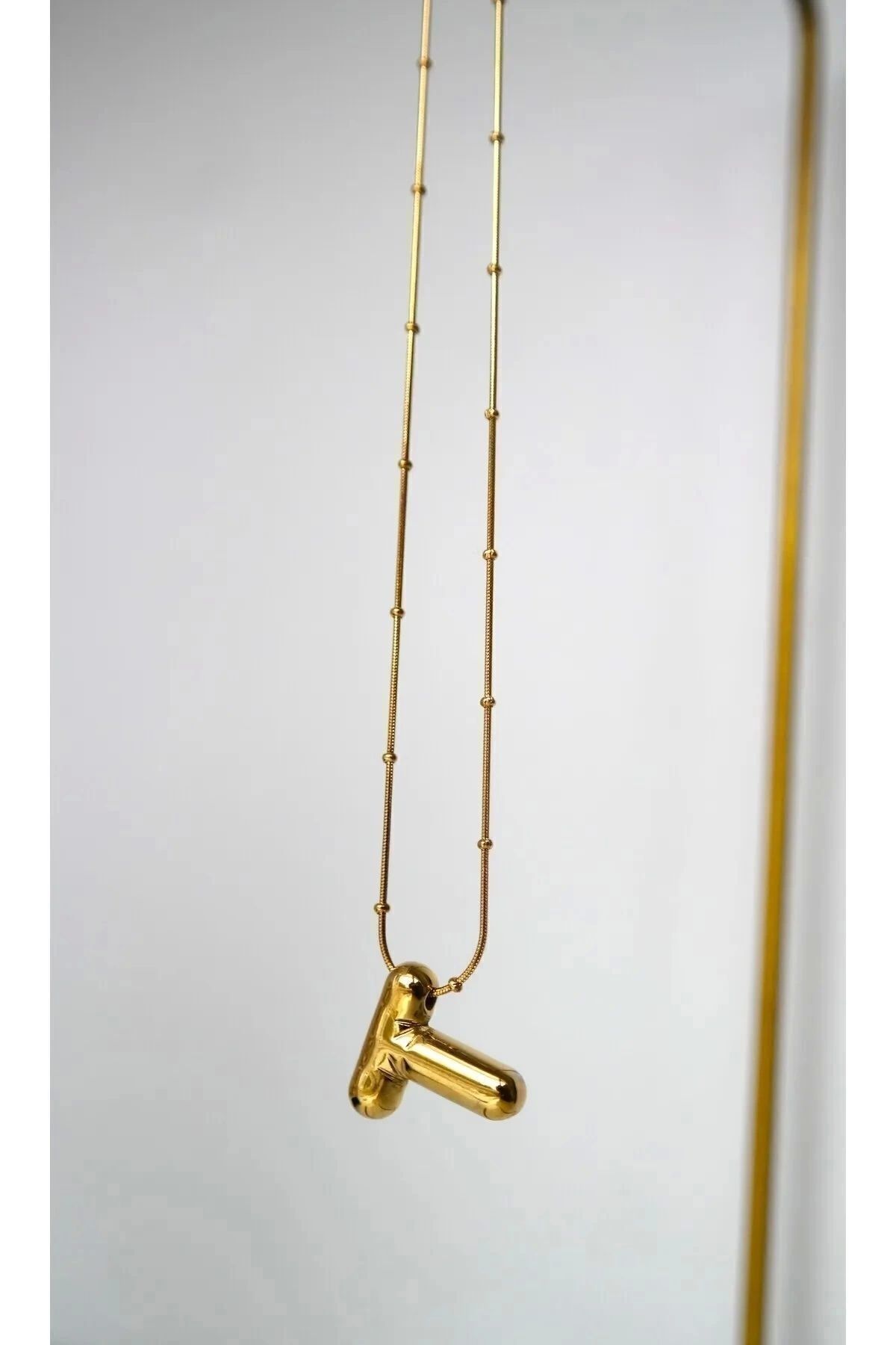 doi aksesuar Çelik Balon Harf Kolye T Harfi