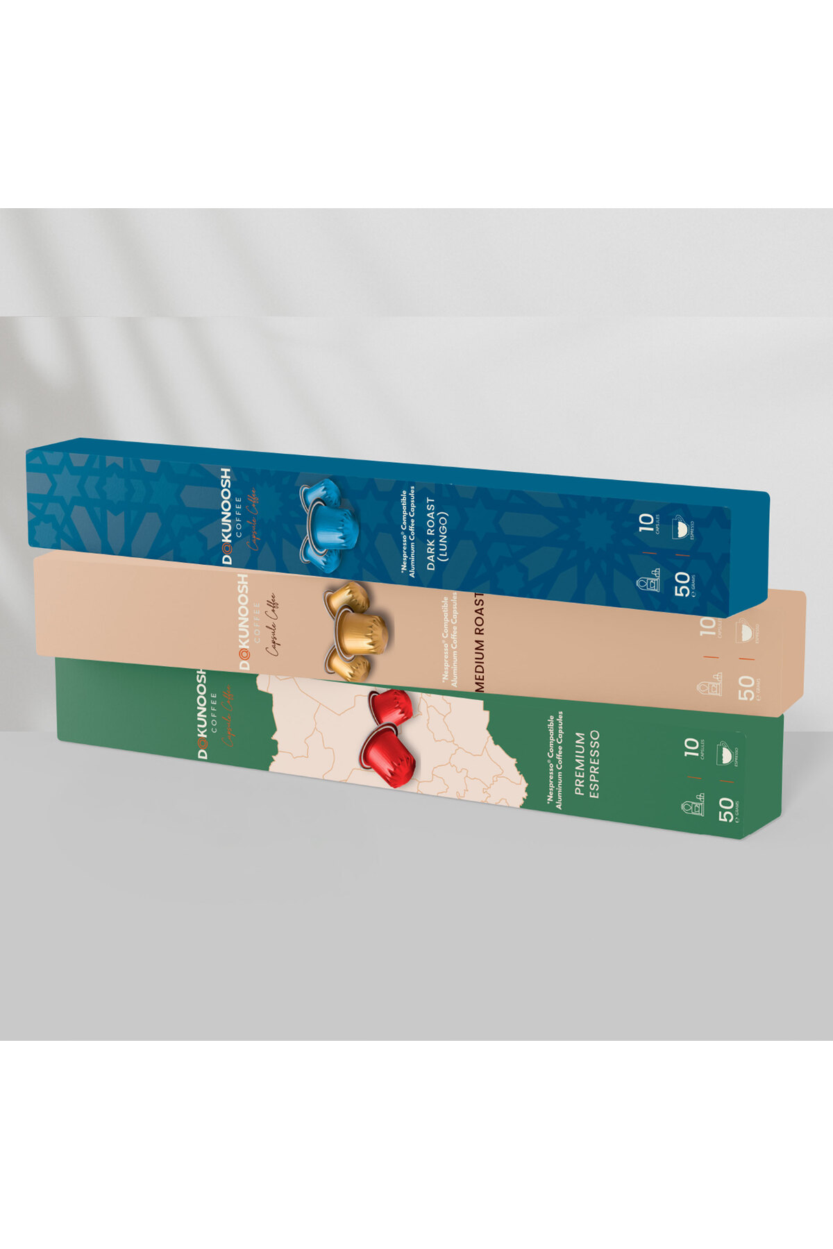 Dokunoosh Nespresso Uyumlu Aluminyum Kapsül Kahve 3’lü Set – Dark, Medium, Premium Roast