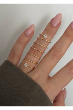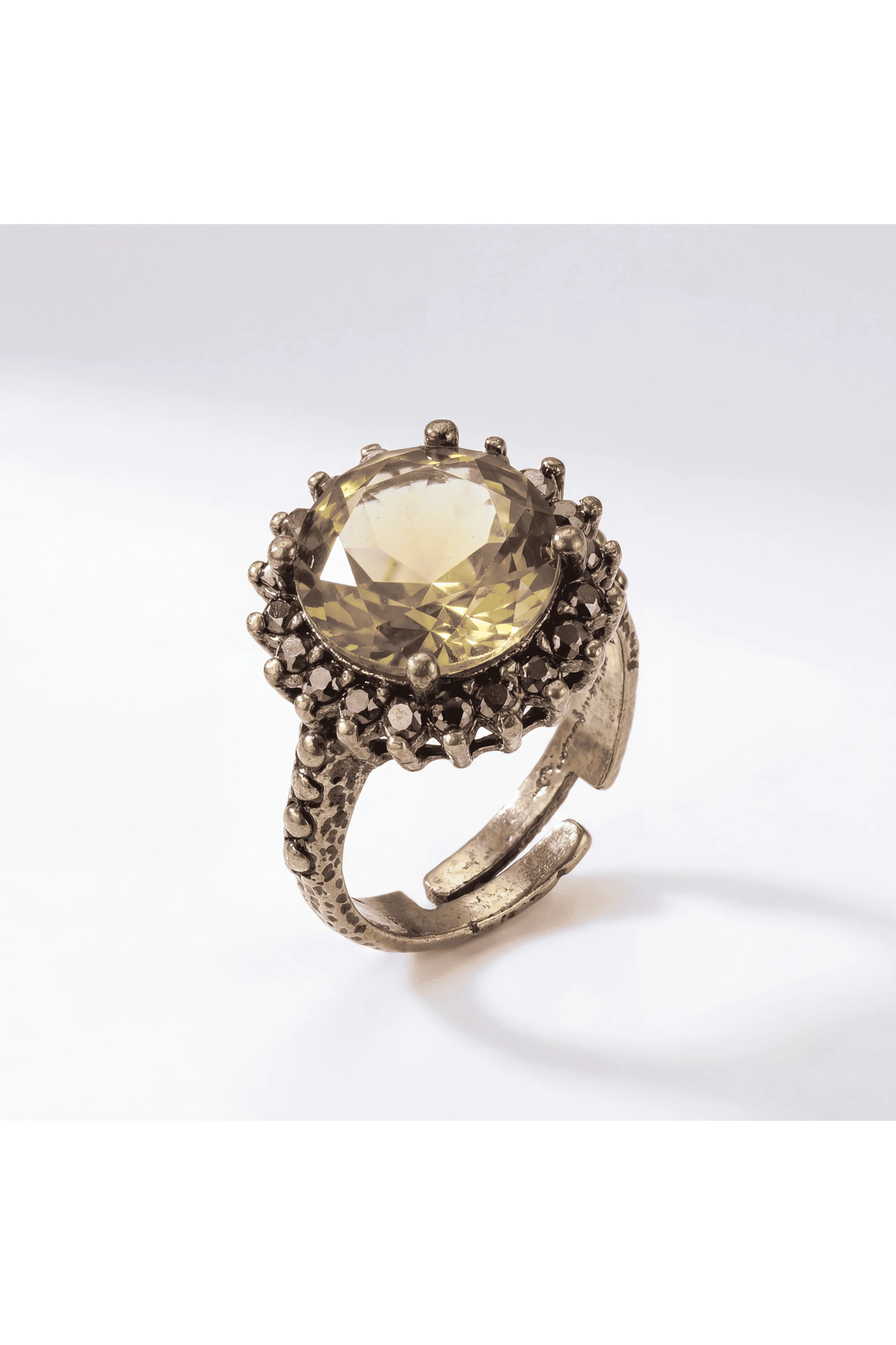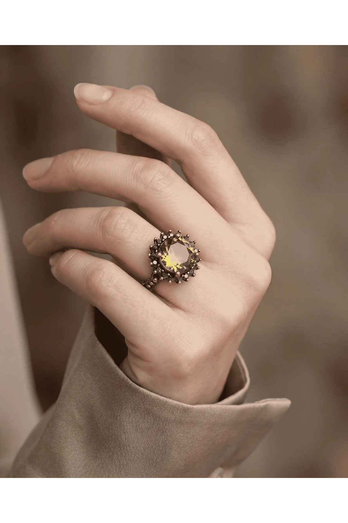 Dorvina Bronz Takı Renk Değiştiren Zultanit Taşı Yuvarlak Kesim Sıra Taşlı Model Vintage Kadın Yüzük