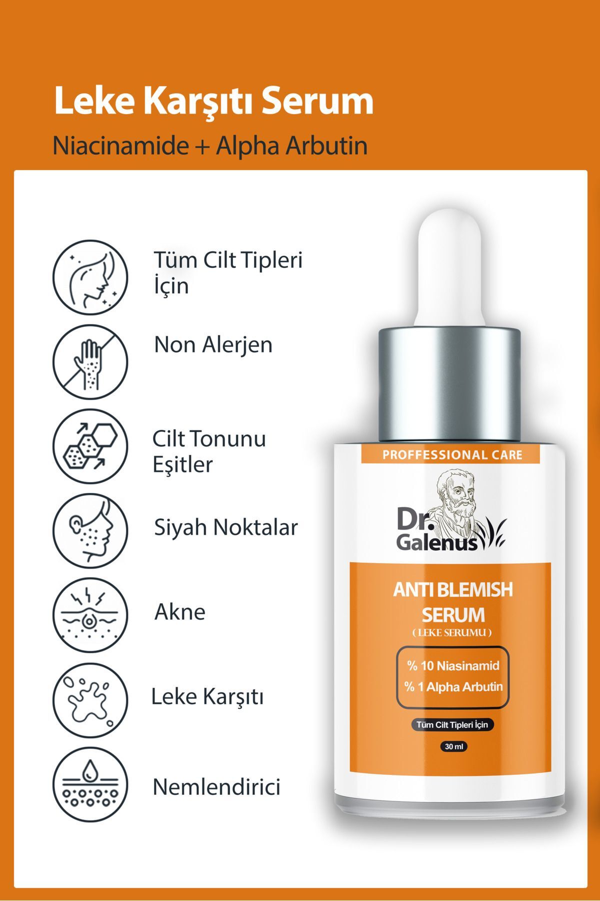Dr. Galenus Yoğun Leke Karşıtı Ve Ton Eşitleyici Bakım Serumu (%10 NİACİNAMİDE & %1 ALPHA ARBUTİN) 30 ml