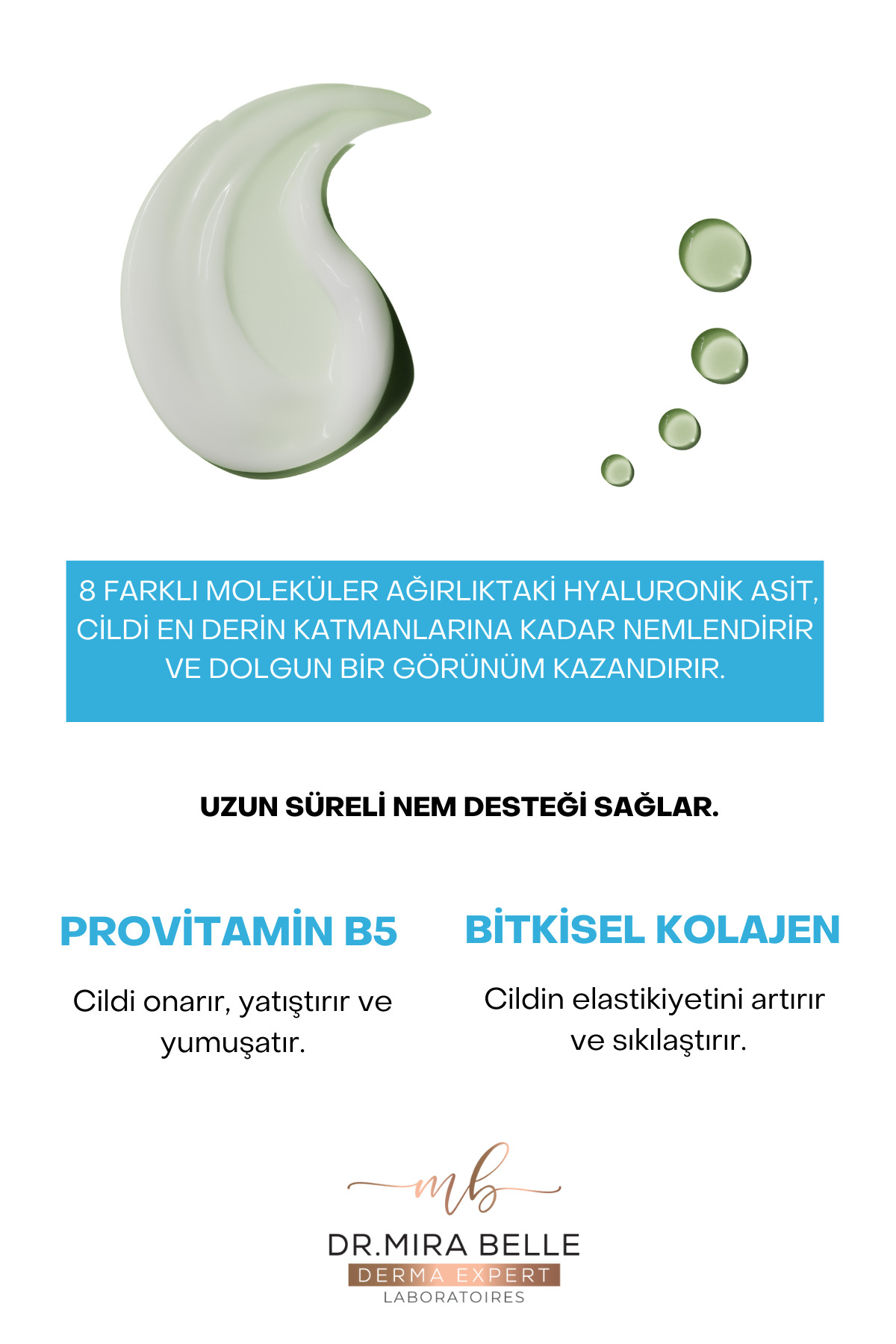Dr. Mira Belle Derma Expert Mira-HA Serum 8 Farklı Molekül HA & Provitamin B5 Destekli Yoğun Nemlendirici Yüz Serumu 30 ml