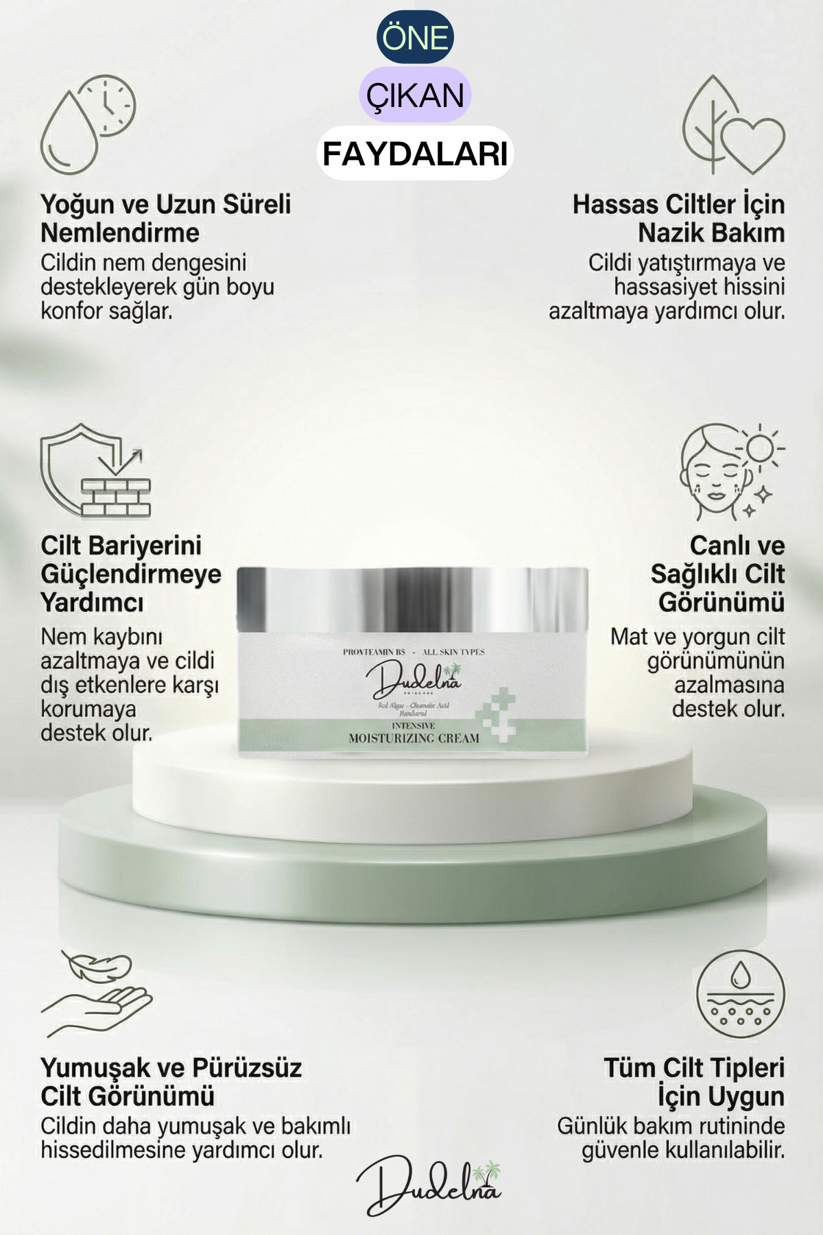 DUDELNA Yoğun Nemlendirici Yüz & Cilt Kremi – ProVitamin B5 | Tüm Cilt Tipleri | Kırmızı Yosun & Allantoin ürünü ucuz fiyat, hızlı kargo imkanı ile hemen sitemizden sipariş verin.