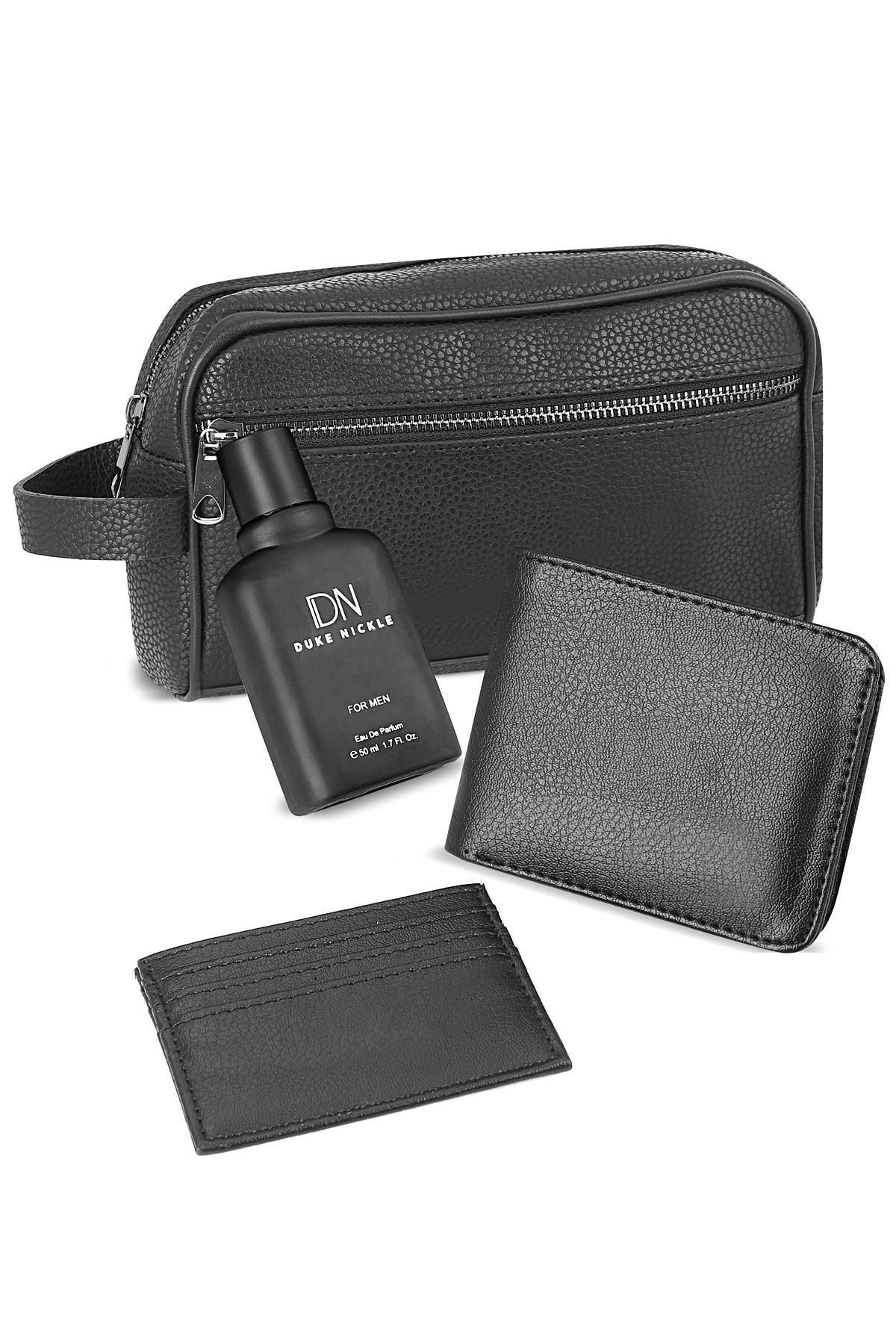 Duke Nickle Siyah Vegan Deri El Çantası, Klasik Cüzdan & Kartlık Parfümlü Hediye Seti – Şık Ve Fonksiyonel