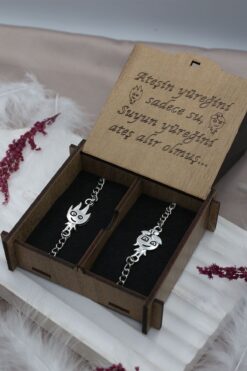 Dukkanka 2’li Ateş Ve Su Gümüş Renk Çift Sevgili Best Metal Bileklik Yazılı Hediye Kutulu