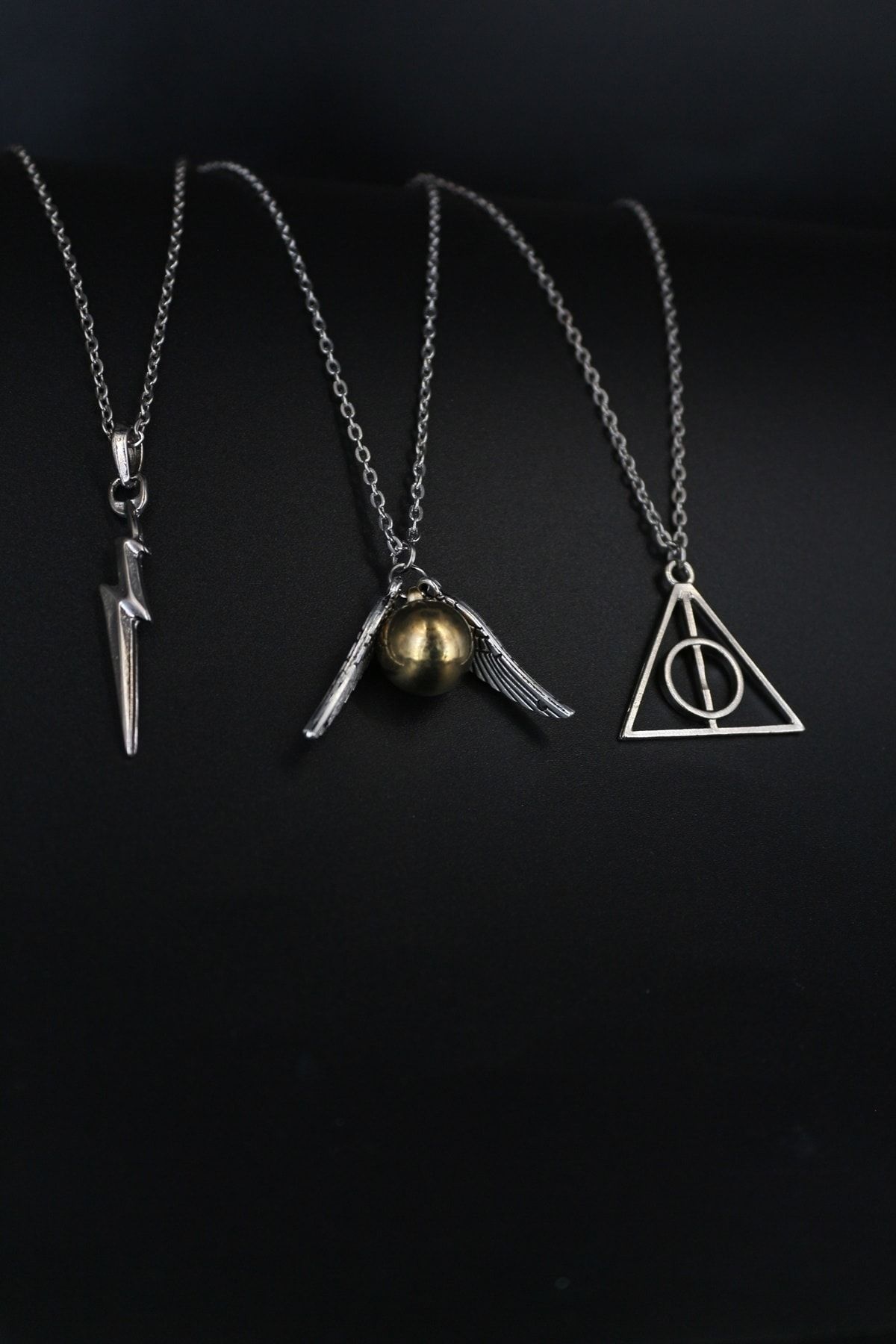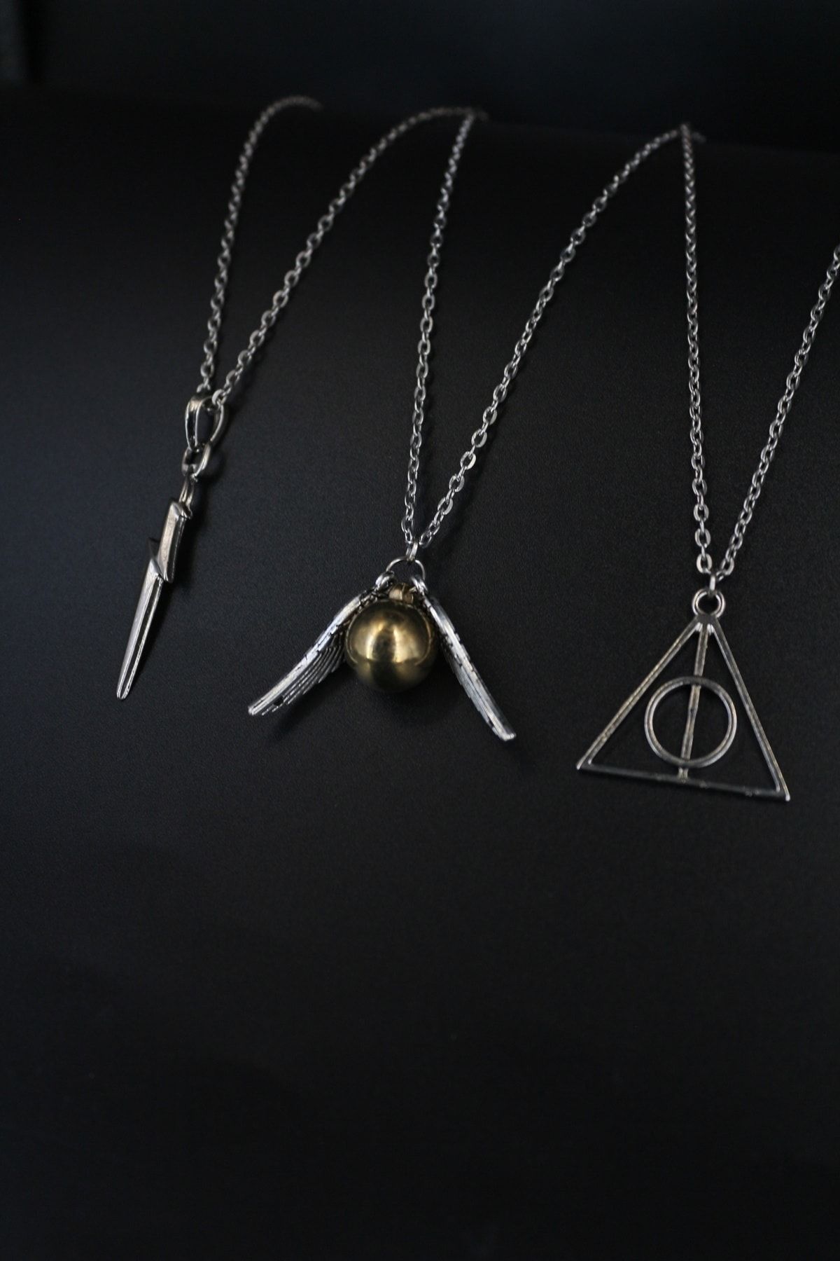 Dukkanka 3’lü Şimşek, Snitch Ve Ölüm Yadigarları Üçgen Kolye Seti