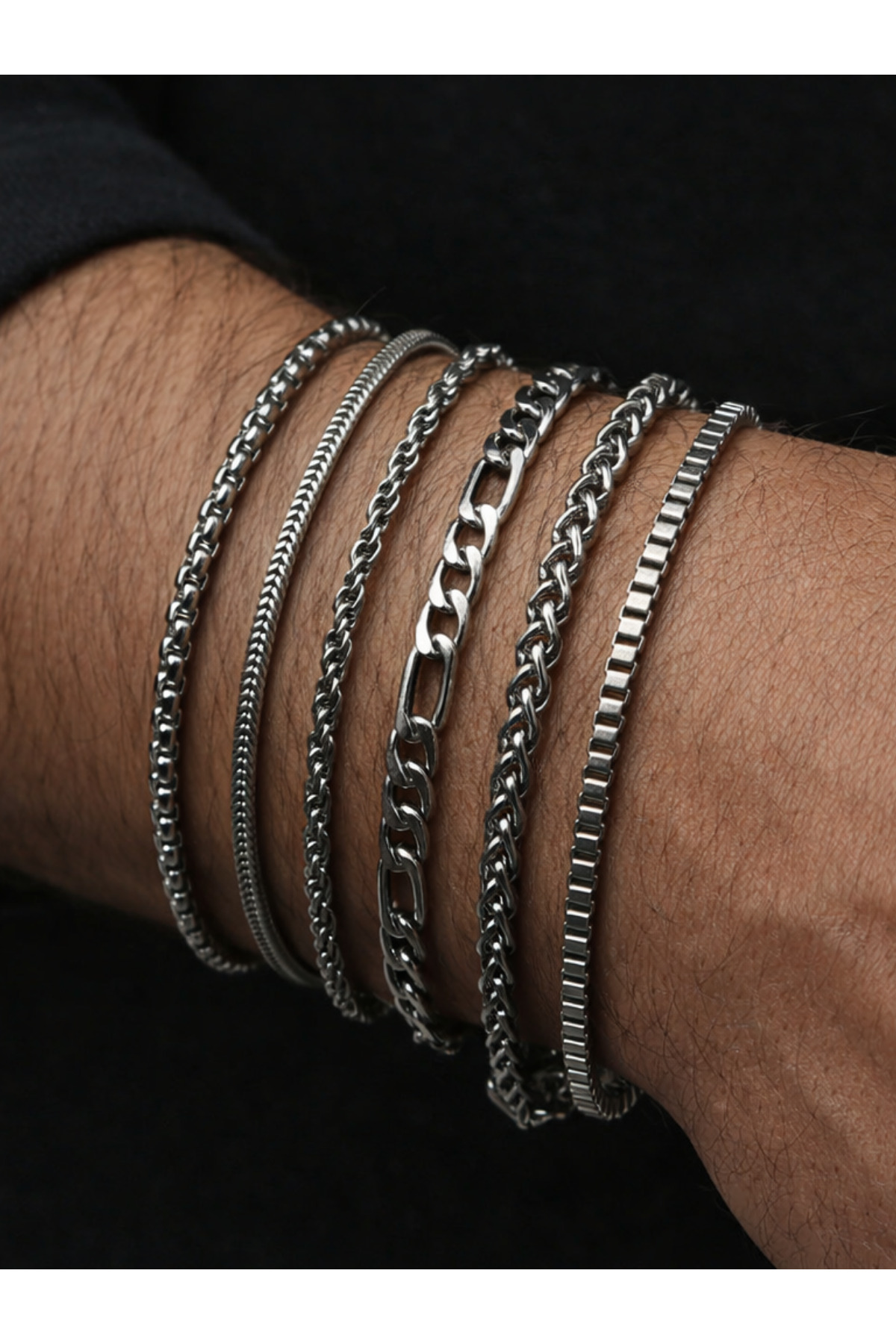Dukkanka 6’lı Zincir Gümüş Renk Erkek Bileklik Seti