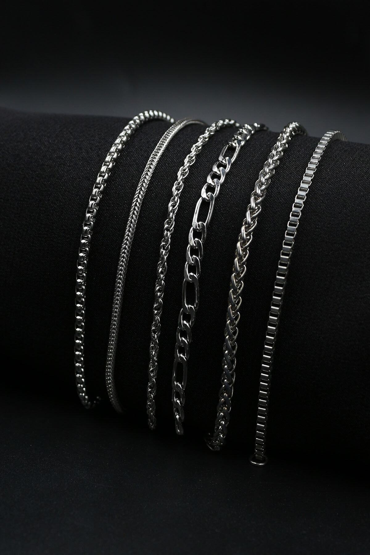 Dukkanka 6'lı Zincir Gümüş Renk Erkek Bileklik Seti ürünü ucuz fiyat, hızlı kargo imkanı ile hemen sitemizden sipariş verin.