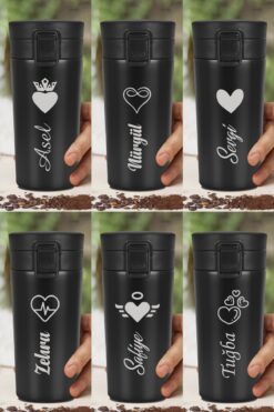 DURABLES Kişiye Özel Isimli Baskılı Termos Filtreli 304 Paslanmaz Çelik Çift Katmanlı Sızdırmaz 380 Ml Termos