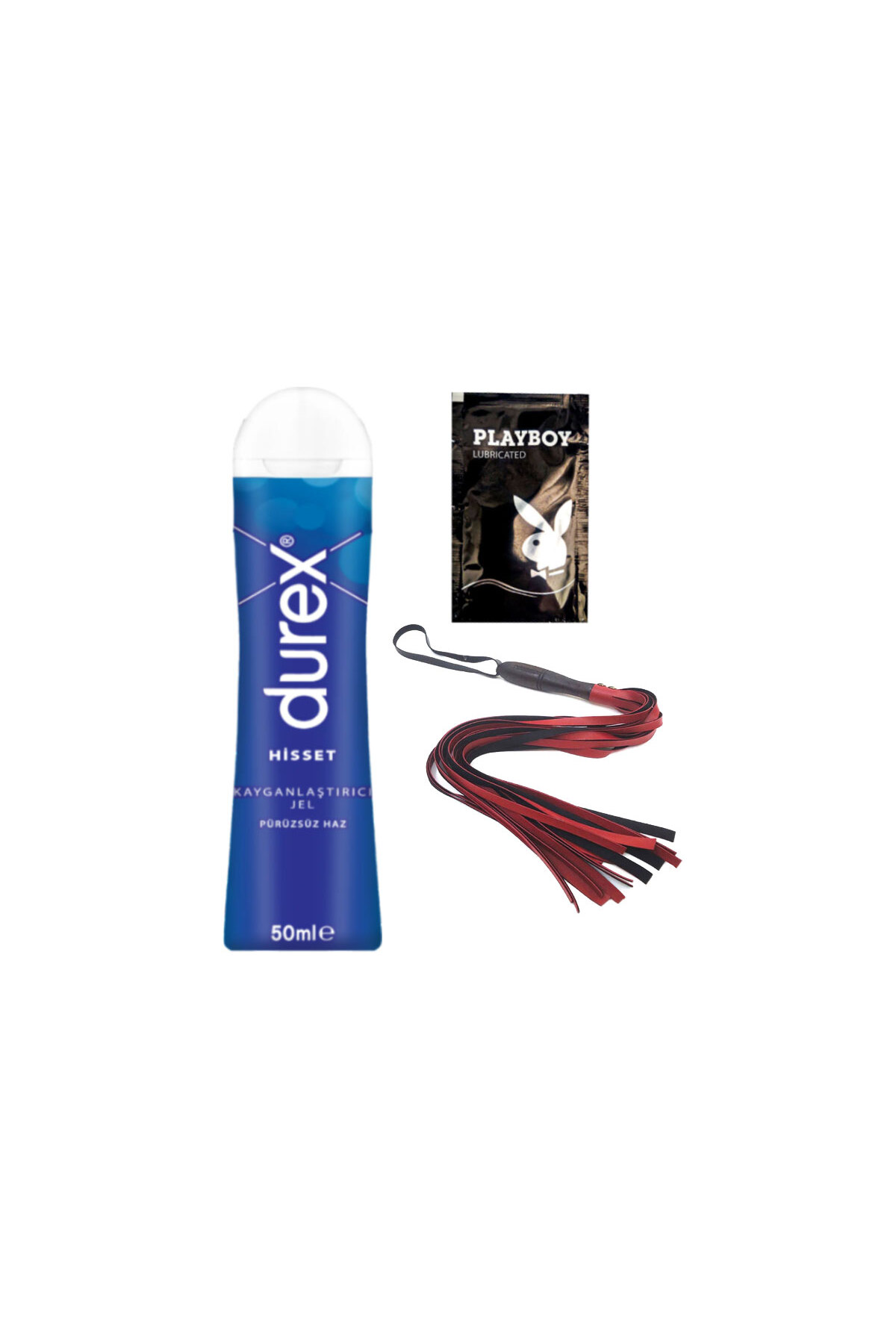 Durex Hisset Pürüzsüz Hazlar 50 ml Jel + Kırmızı Püsküllü Deri Kırbaç + Hediye